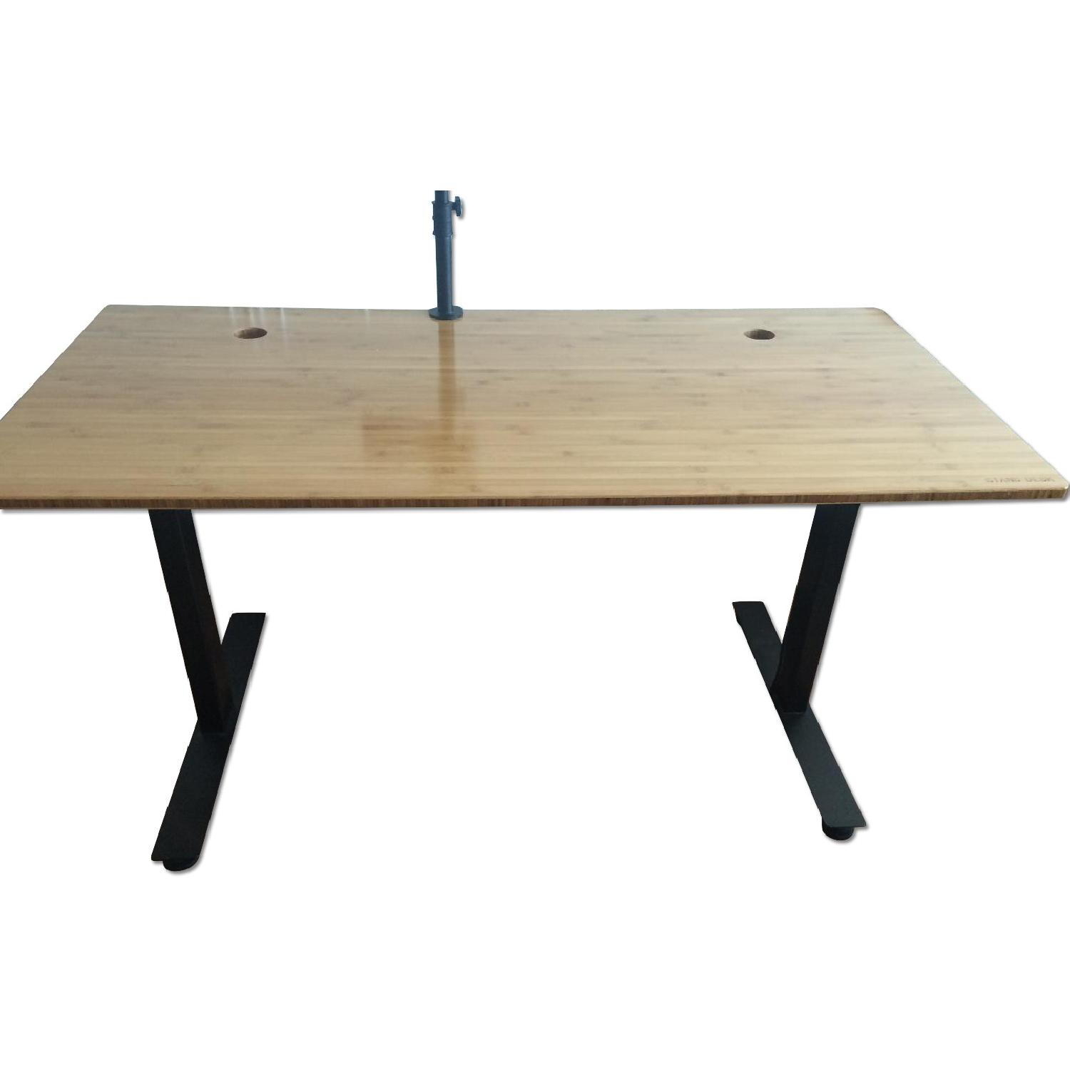 Seller's Notes:Beautiful Standing Desk with bamboo top, matte black frame and integrated power strip with cord management. Includes anti-fatigue mat and monitor mount. Purchased a year ago but I moved and it doesn't fit in my new apt. Top is 30" by 60". Height adjustable from 29.5" to 47"