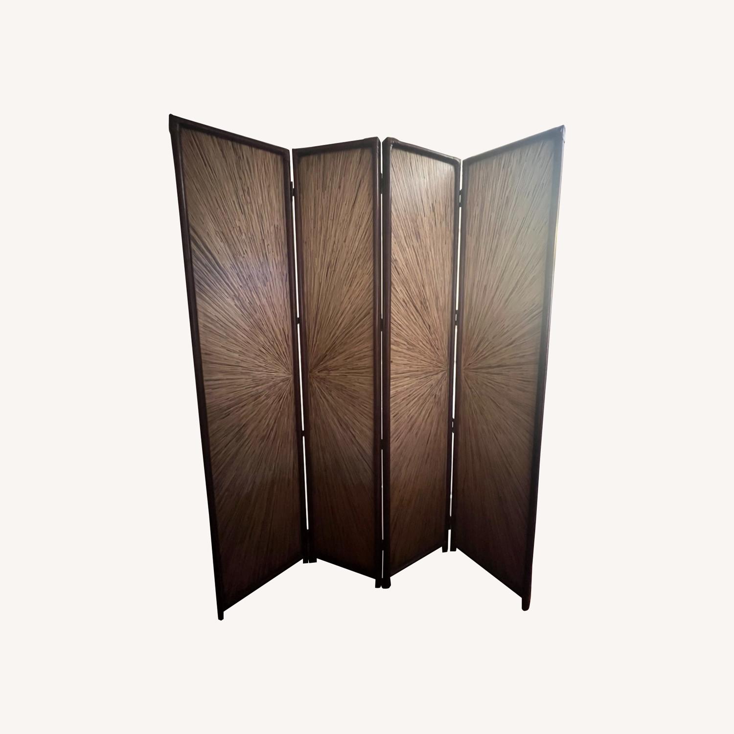 Seller's Notes:Purchased at the Hight Point, North Carolina Furniture market approx. 10 years ago - A beautiful, good quality, 7' H x 5' W, 4 panel room divider/screen made with wood supports/trim and bamboo in a sunburst design. In good condition. Great for NYC apartments - especially Studios and Alcove Studios. Pick up from Upper East Side location.