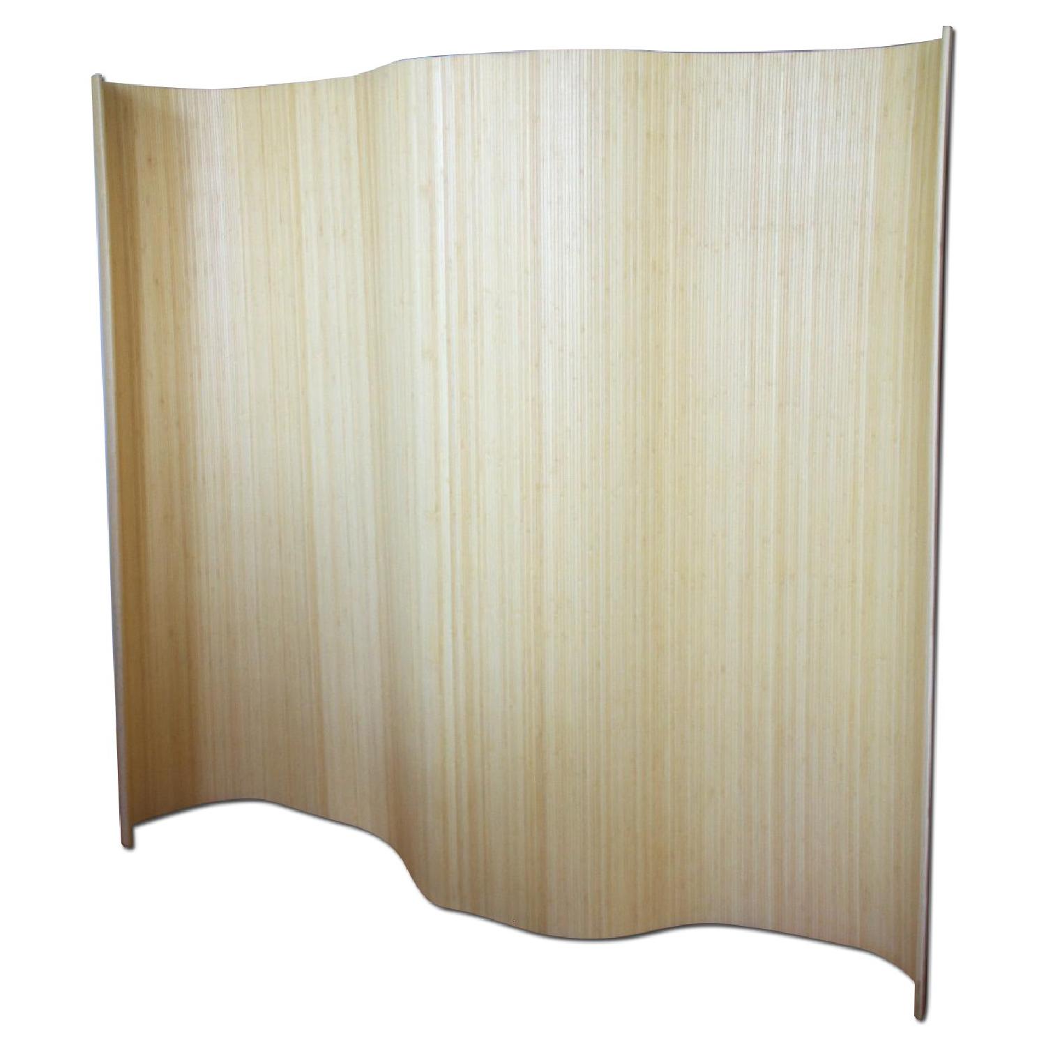 Seller's Notes:A remarkably practical room divider or office partition, as well as a distinctive decorative accent. Hand-crafted from light-weight and extra strong kiln dried bamboo, in a flexible interlocking "wave" style design. • Unique, ultra flexible interlocking "wave" design • Lightweight, durable, sustainable Bamboo • Rolls up for easy, convenient storage • Since the divider unrolls, you can adjust how long you need it to be depending on the space