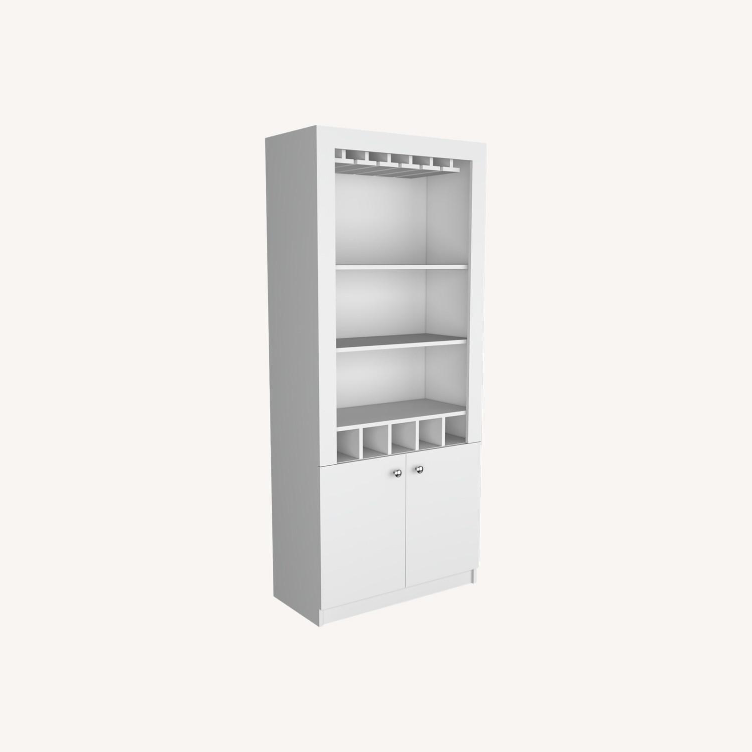 Seller's Notes:"The Margarita Bar Cabinet has you covered when it comes to entertainment. Its stylish design combined with its unique look is sure to impress your guests. Wine Glass Rack with 10 pc capacity, five liquor bottle cubbies, three open shelves, and a spacious cabinet for storage and display. Designed with white manufactured wood. Dimensions: Height: 69,05” Width: 29,5” Depth: 14,5“ Furniture Type: Ready to assemble (full assembly required). Certifications: CARB phase II compliant – TSCA Title VI Compliant. Warranty: 1-year warranty coverage in wooden parts- 1-year warranty coverage in hardware pieces since its manufacturing date found in the lot number printed in the product box. Shipment details: Free shipping to the 48 contiguous states - delivery time: Between 2 and 5 days depending on the customer's location, season and weather factors. Other details: This product does not include decorative or background elements; Check that the box is in good condition, well packed and check with the help of the manual that the corresponding parts have been included; For more information regarding warranty, shipment details, cancellations, returns & replacement parts go to the bottom section of our website to learn more; Installation & Assembly Instructions included."
