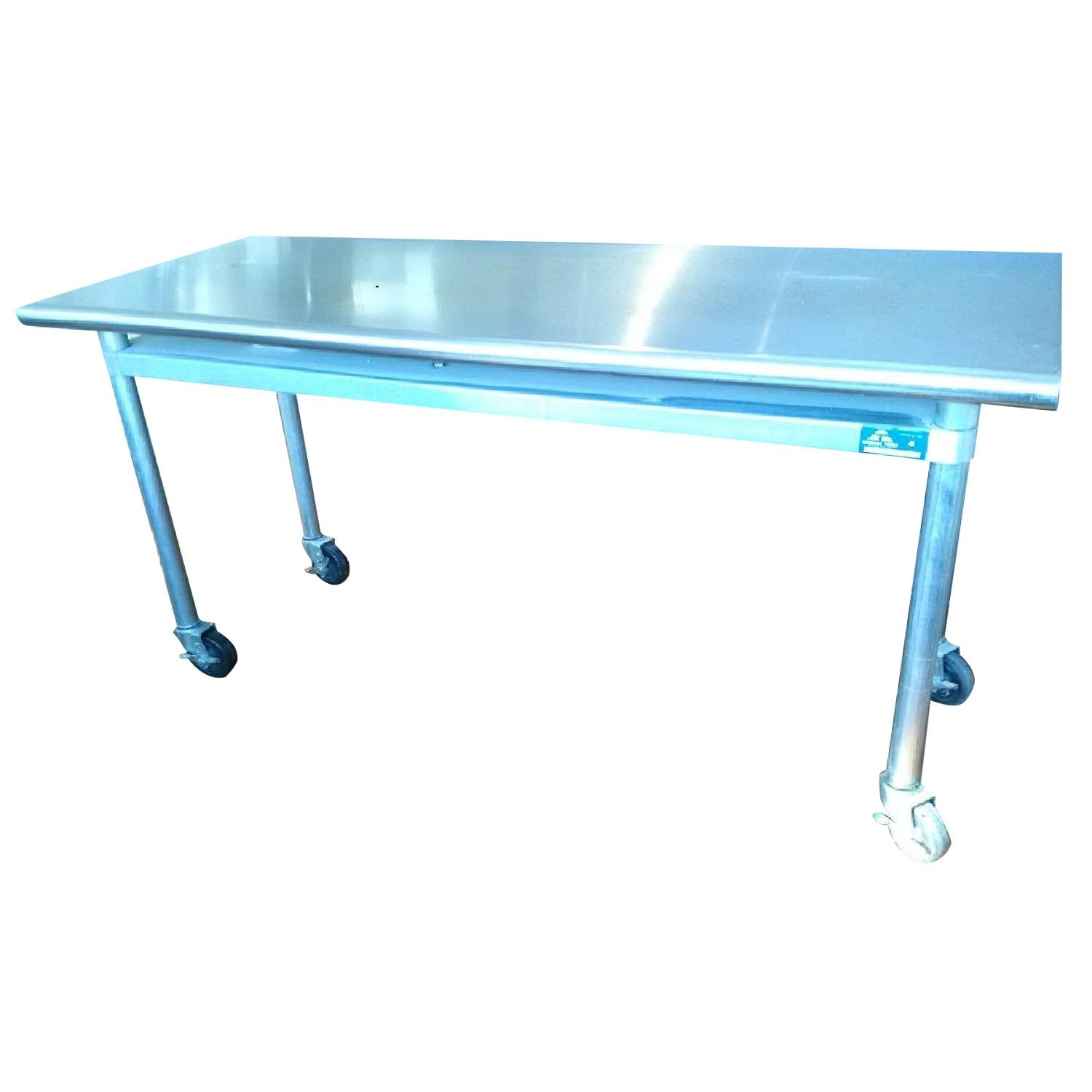 Seller's Notes:Commercial grade restaurant kitchen table which I had cut down to desk / kitchen table height and then added the appropriate industrial wheels. Very sturdy and cool. I use ask desk I have it placed in a loft type setting along with brown upholstered couch and leather chairs