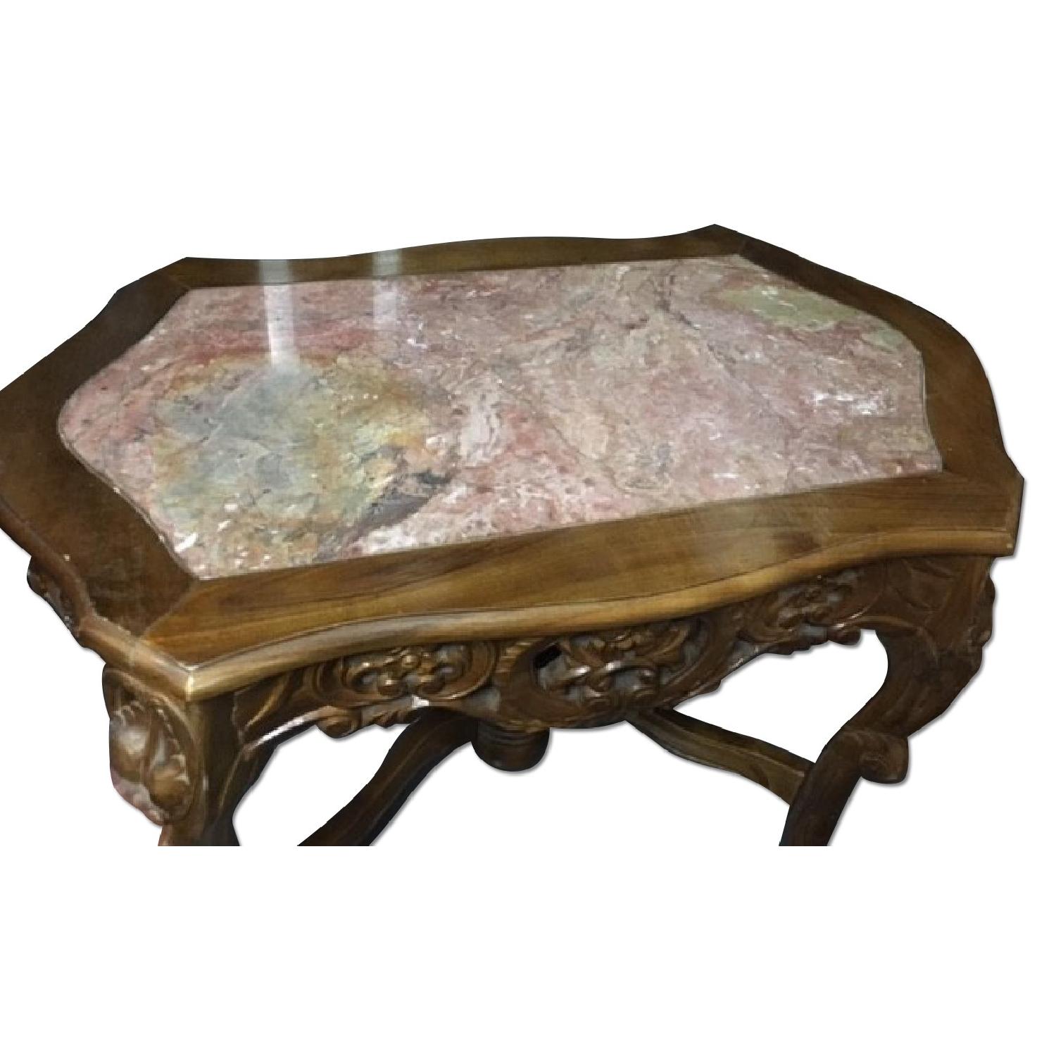 Seller's Notes:Great piece. Solid and heavy. Has been around but is cool and works WELL. Baroque with rose marble top that has some discoloration - looks like a silver tray was kept there for may years. Cane be restored - I liked it that way!