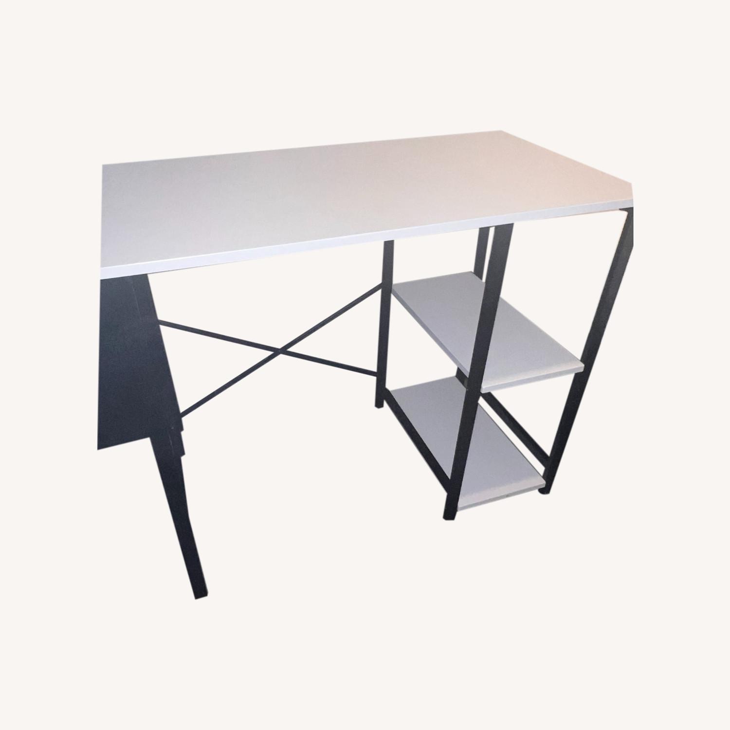 Seller's Notes:Minor blemishes but fairly new. Extremely durable. Can fit up to 2 monitors and laptop. Have additional storage space with shelving below (can be built on right or left side).