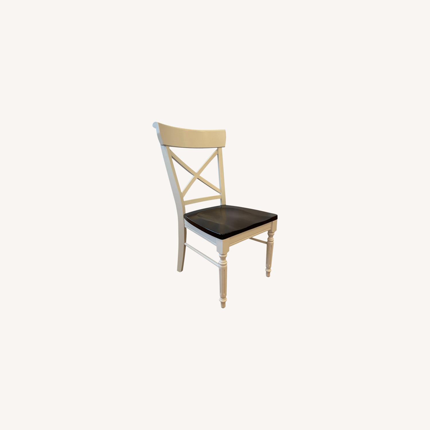 Seller's Notes:Selling Custom designed dining chairs from Basset Furniture. The chairs feature white legs and back with a dark stained wood seat.