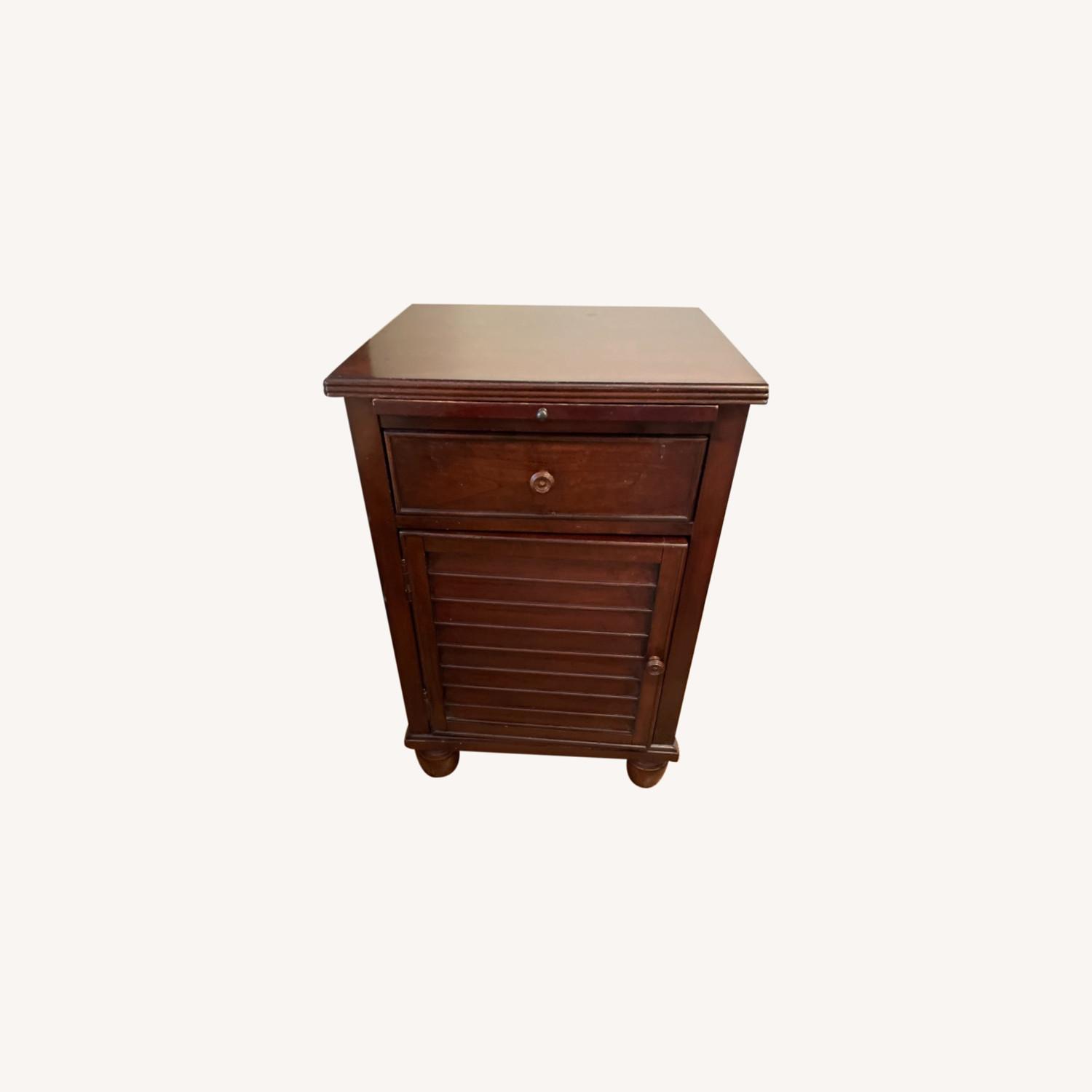 Seller's Notes:Beautiful Bassett night stand with slide out tray, drawer and storage cabinet. Tons of storage, excellent condition. Breaks my heart to part with this, but the bedroom set is too big for my current bedroom. Matching sleigh bed head and footboard and matching Chifforobe available on this site