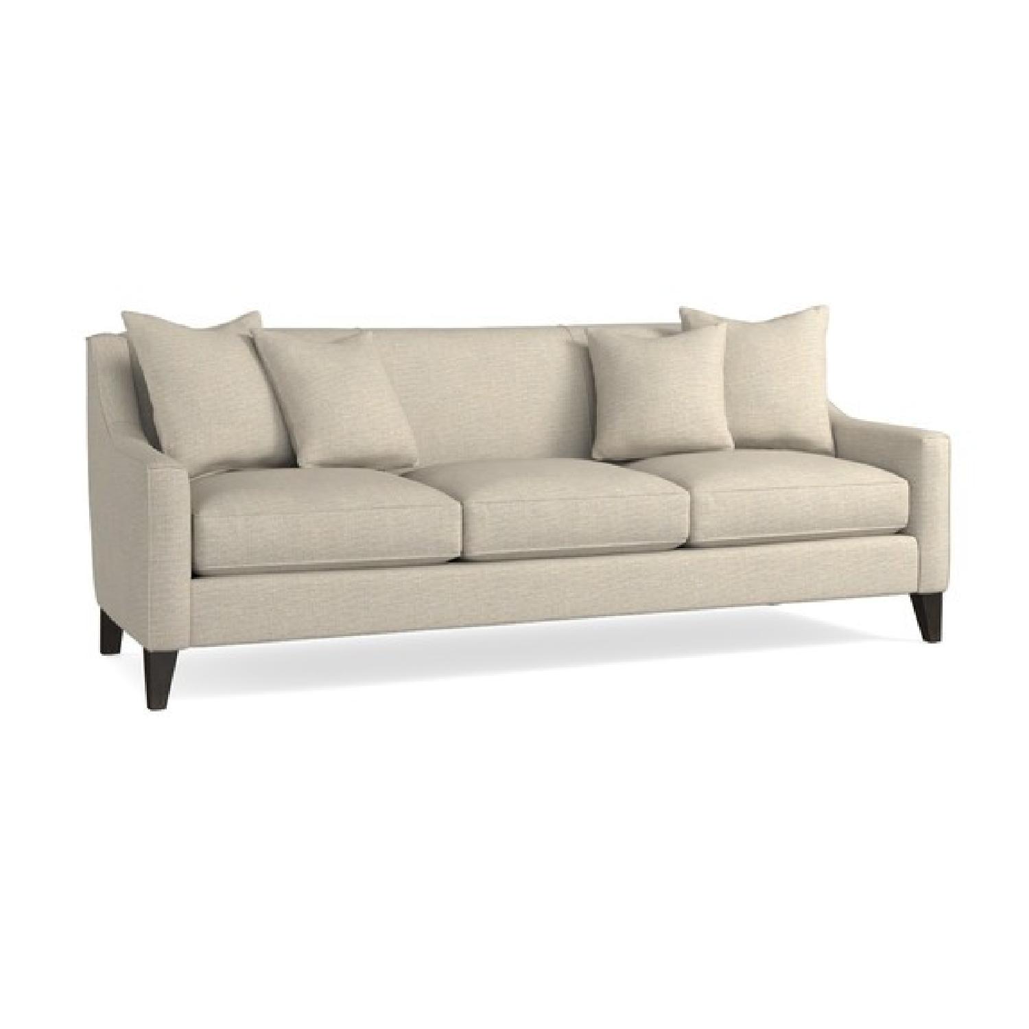 Seller's Notes:BRAND: BASSETT FURNITURE: 3-SEATER LAUREN SOFA COLOR: NATURAL NUMBER OF STANDARD PILLOWS: 4 YEARS OLD: 3