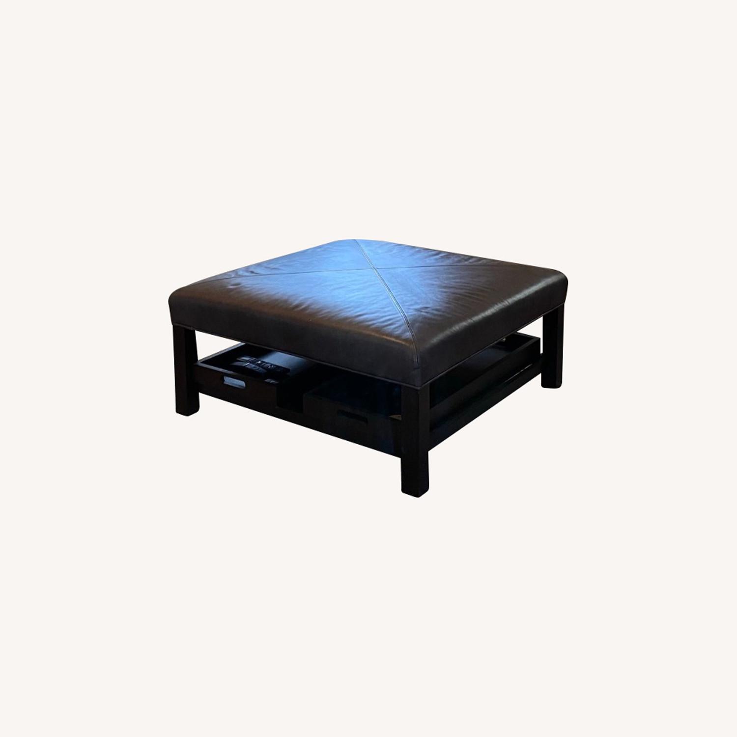 Bassett Leather Ottoman with Trays