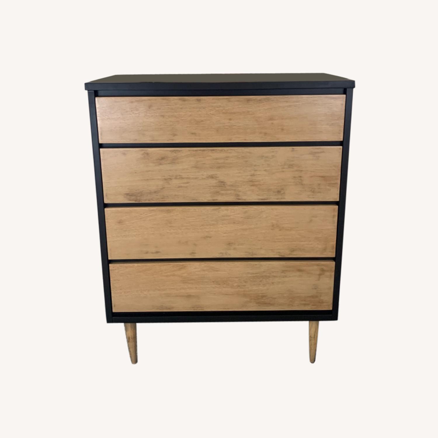 Seller's Notes:This mid century modern 4 drawer dresser by Bassett furniture features hardwood construction, four dovetailed drawers, and tall tapered legs. Drawers and legs sanded to bare wood, stained lighter, and sealed. Base painted black. Dimensions: 34w 18d 43h Condition: Original Bassett furniture MCM dresser. Even with refinishing, minor cosmetic wear and tear consistent with age, but overall excellent condition. Please inspect photos carefully and contact with questions prior to purchase. Available for local pick up Massapequa, NY