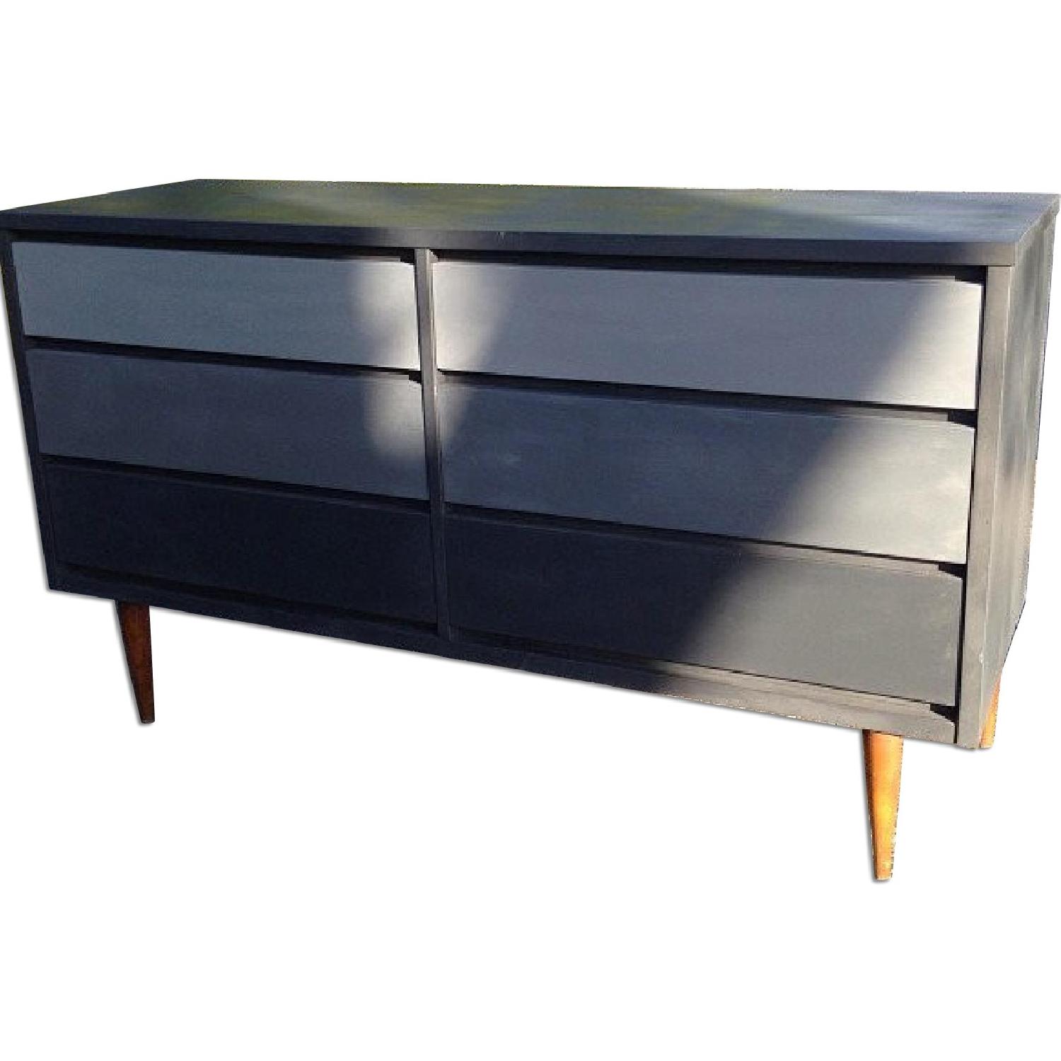 Seller's Notes:Soft and retro lines, stylish look, this lovely dresser, vintage and trendy, has it all. In a bedroom, a bathroom, an entry or living room, it will look wonderful and will bring a unique vintage to your decoration. Built by Bassett Furniture, love its mid-century modern Scandinavian design and pretty typical details of the 50s: compass feet, staggered drawers and rounded profiles. Furniture in good condition and stable. Easy to clean ombre style chalkboard paint in 3 shades of blue. Dimensions: 52 (length) x 18 (width) x 30.5 (height) Note: This dresser has been completely renovated. However this piece there was manufactured more than 50 years, some traces or minor defects may remain. It’s part of his life story and personality :)
