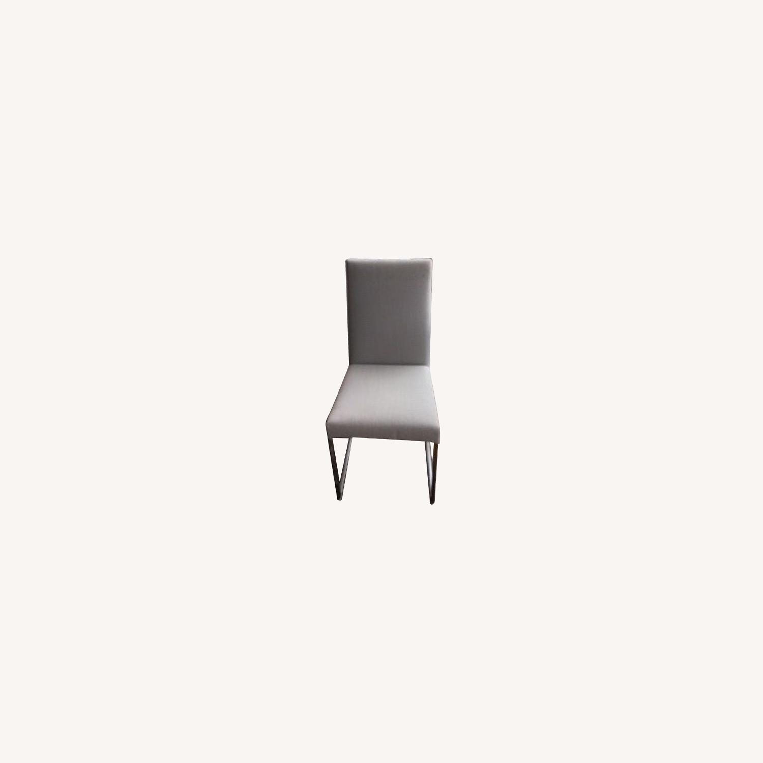 Seller's Notes:Custom made in Italy through B&B Italia in NYC. Fabric is Larsen BRNO Silver. Chairs are slightly worn, but are a beautiful silhouette, amazing quality and can be either cleaned or reupholstered.