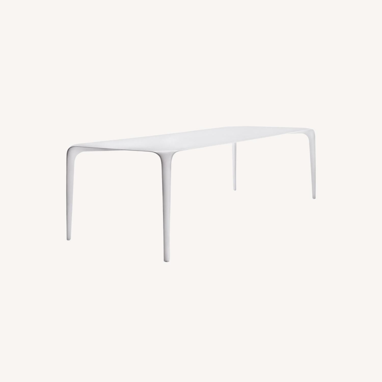 Seller's Notes:B&B Italia Link Table 74” One-of-a-kind, moulded in a continuous, joint-free shape, the Link Outdoor table stands out for its pure design and soft materiality. It is made from a practical technological material: a special Cristalplant® compound with a soft-touch effect of considerable sensory impact. Suitable for indoor and outdoor use. It has some dent and scratches, that is why price is low. See all pictures.