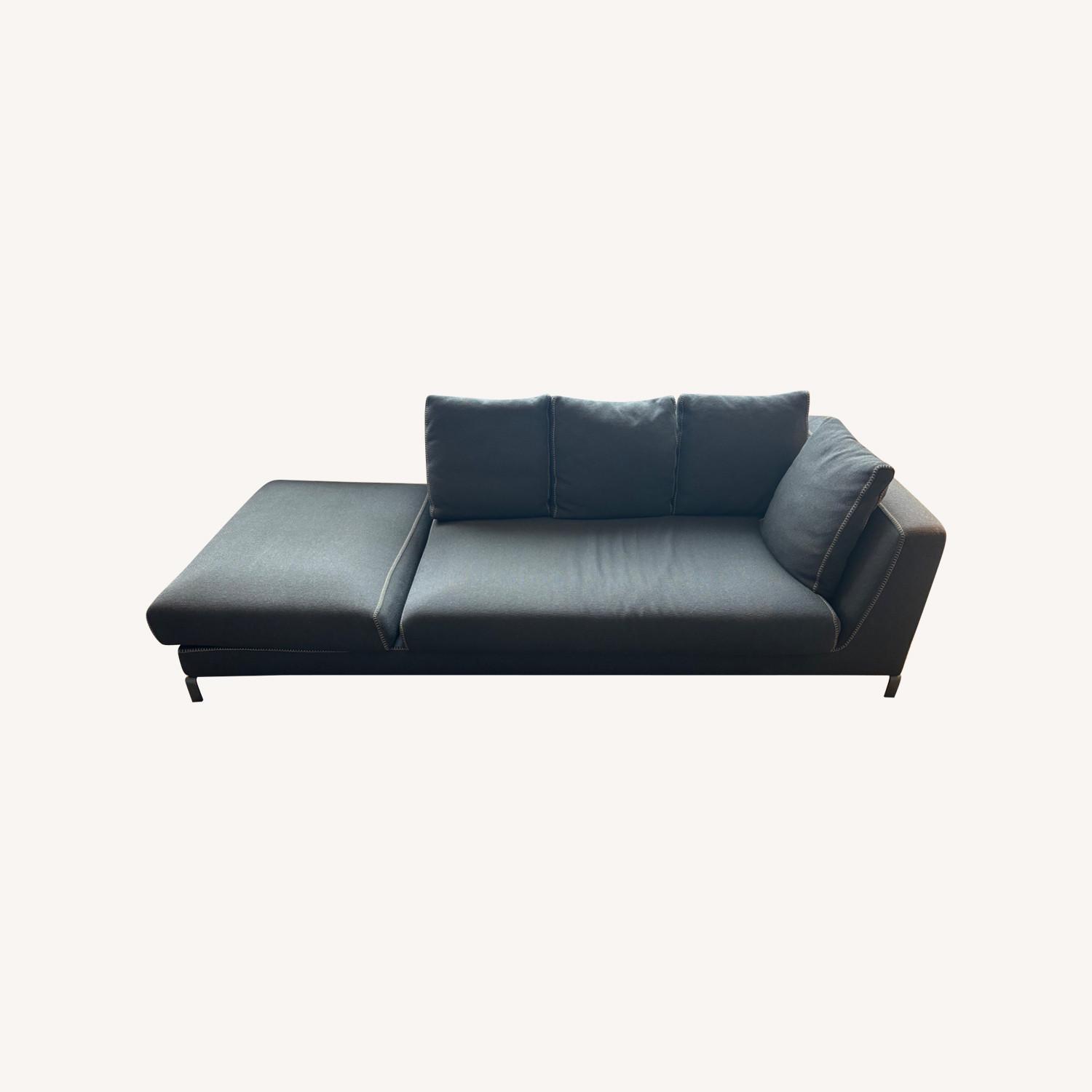 Seller's Notes:Aesthetical and functional, Ray is a modular system that starts with linear elements, chaise longues and terminal elements, which can be used to form all sorts of configurations – even corner and peninsula models. Its strong points are linearity and simplicity, enriched with tailoring elements such as the blanket stitch in the same colour or a contrasting hue, that enhances the removable covers. A main feature is the die-cast U-shaped foot that, along with the seat cushion height, contributes to creating an image of Ray as a particularly elegant piece with balanced forms.
