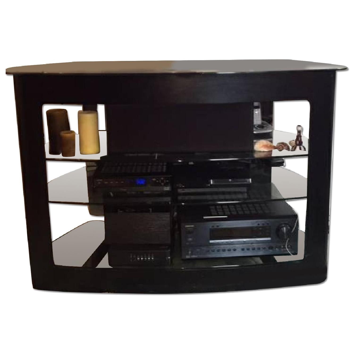 Seller's Notes:BDI Axis TV stand in excellent condition. Black wood and glass. 3 large shelves to store all of your home theater components. Have assembly instructions and BDI original booklet. Selling our home office furniture to make room for baby nursery. Top shelf capacity 325 lbs Adjustable shelf capacity 75 lbs Bottom shelf capacity 150 lbs 32.5"Hx48"Wx27" TV Stand / Home Entertainment Center