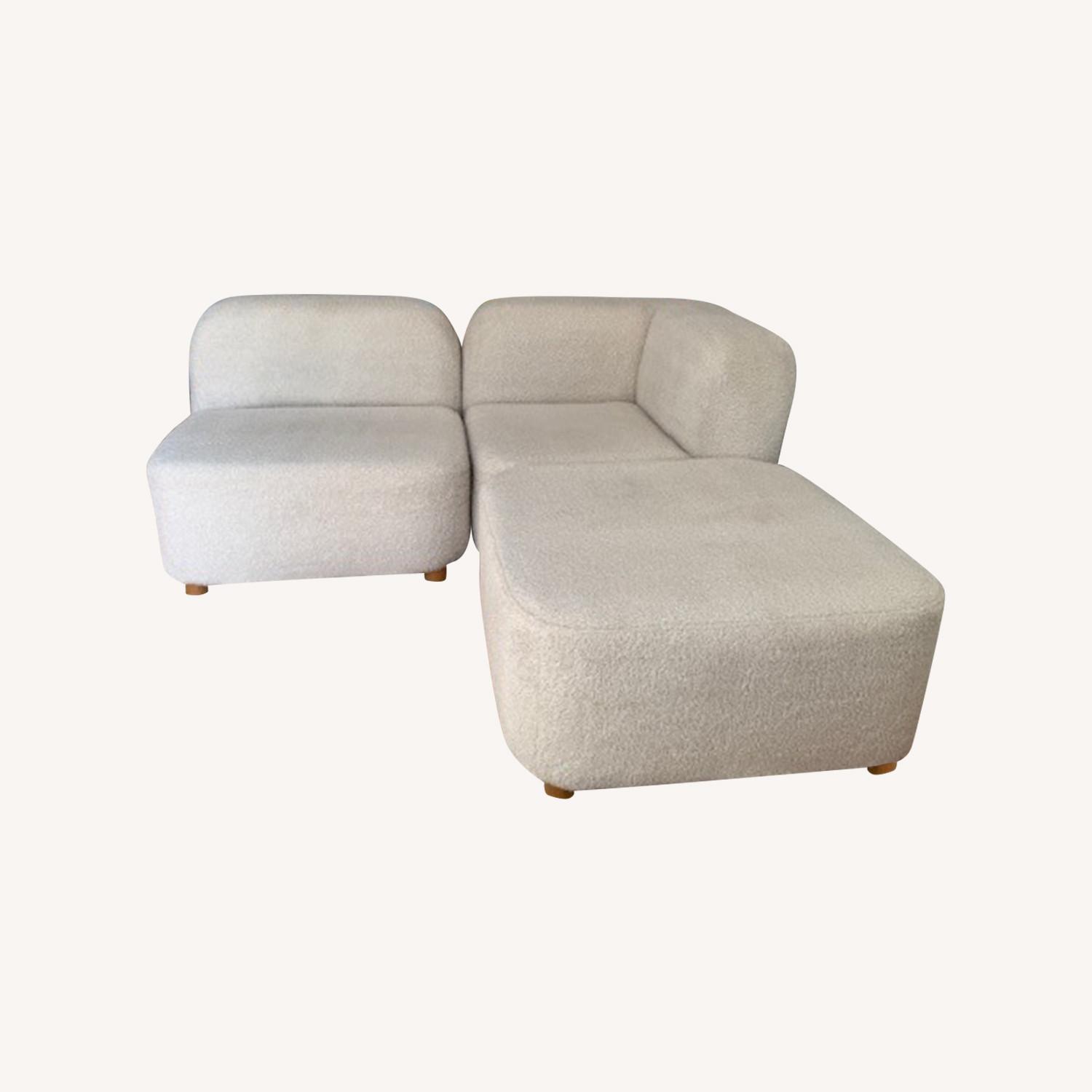 Seller's Notes:This is a 3-piece modular sectional from Beam Brooklyn. Color is white, material is 30% wool, 30% cotton, 30% acrylic, 5% polyester, 5% other fibers. You can place the third piece on either the left or right side. This was just cleaned by Always Green Carpet Cleaner NYC.