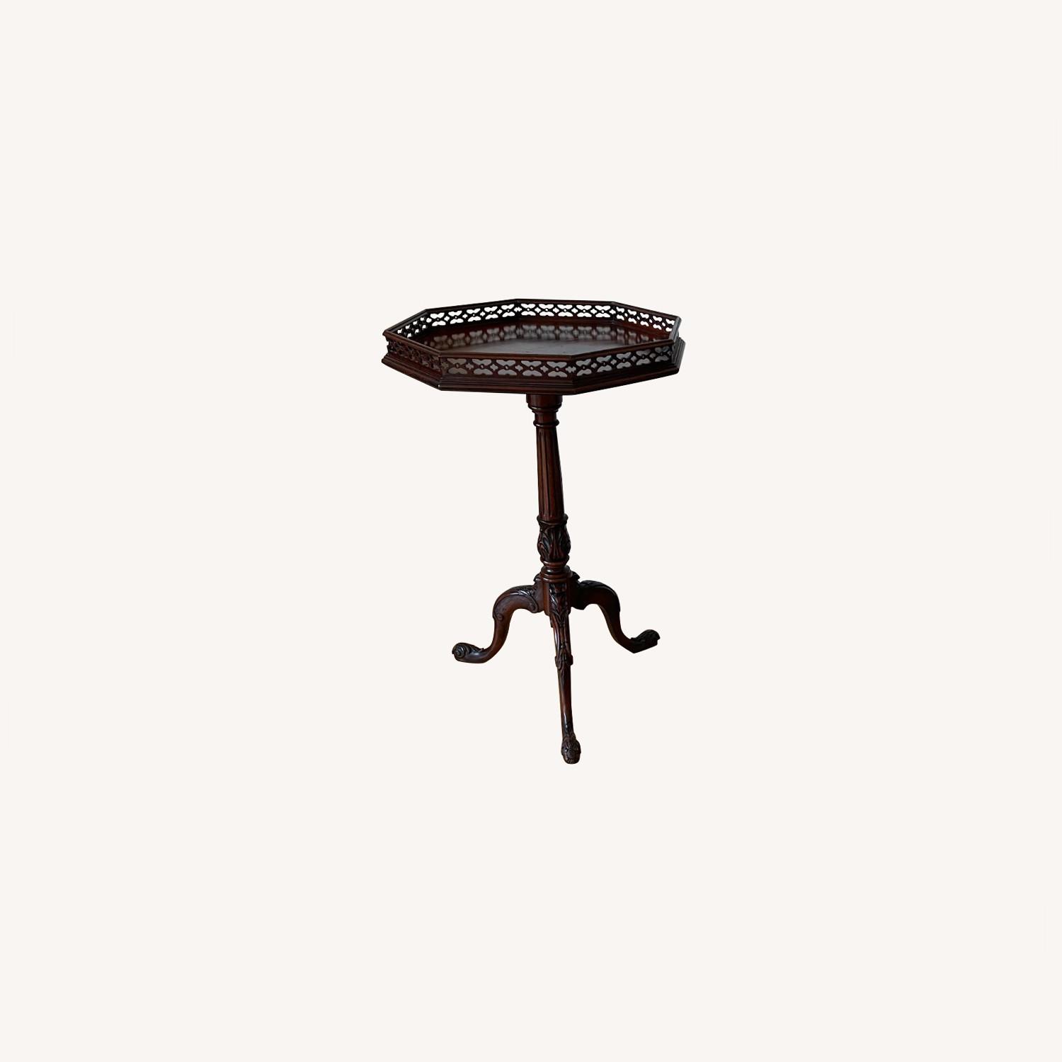 Seller's Notes:These end tables were bought by us at a Scarsdale estate sale. They have beautiful, carved detail, and they are in the most unusual shape of an octagon. We are selling them only because we have had to downsize.