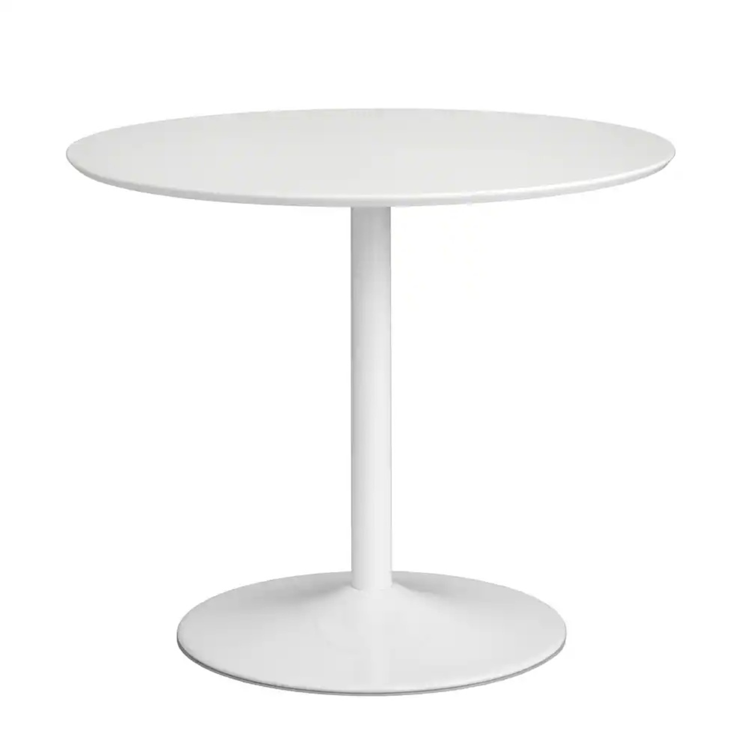 Seller's Notes:All-white, round, pedestal dining table. Minor scratches on the top. One of the "plugs" for the bars underneath the tabletop keeps on popping off but it does not affect the sturdiness of the table (you can try to pop it in yourself).