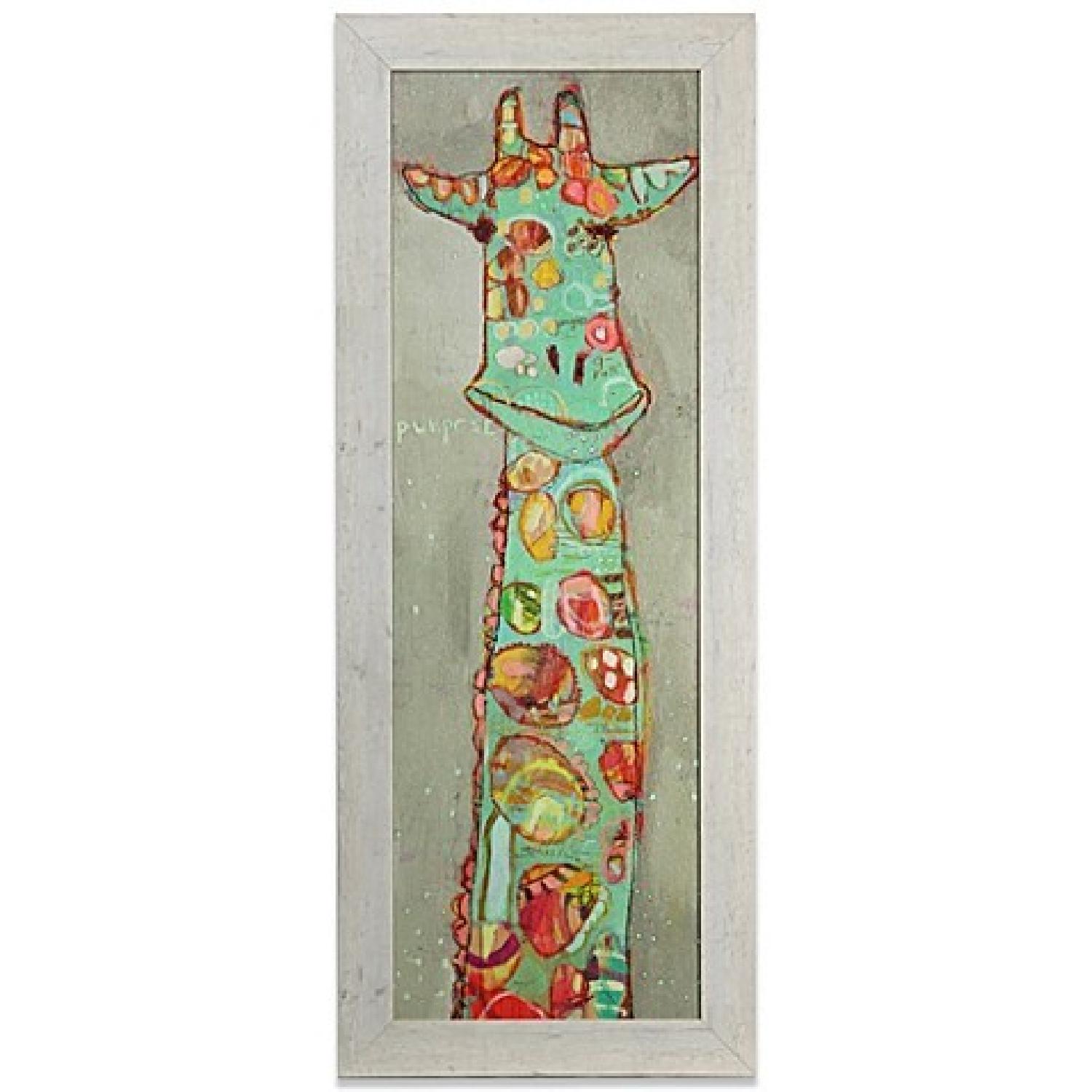 Seller's Notes:I love this painting but we are loving and do not have the wall space for it! It is currently on sale at BB&B for $40 (not including tax or shipping). PRODUCT INFO Fun, abstract and modern, this Colorful Giraffe Framed Art has an almost childlike, humorous quality with its riot of colors, patterns and drawings. This piece will enliven any wall with its whimsical flourishes. The Colorful Giraffe Framed Art will enliven any wall with its whimsical, playful colors and design Faux wood frame molding Measures 16" L x 40" W 50% polystyrene/40% PDF/10% paper