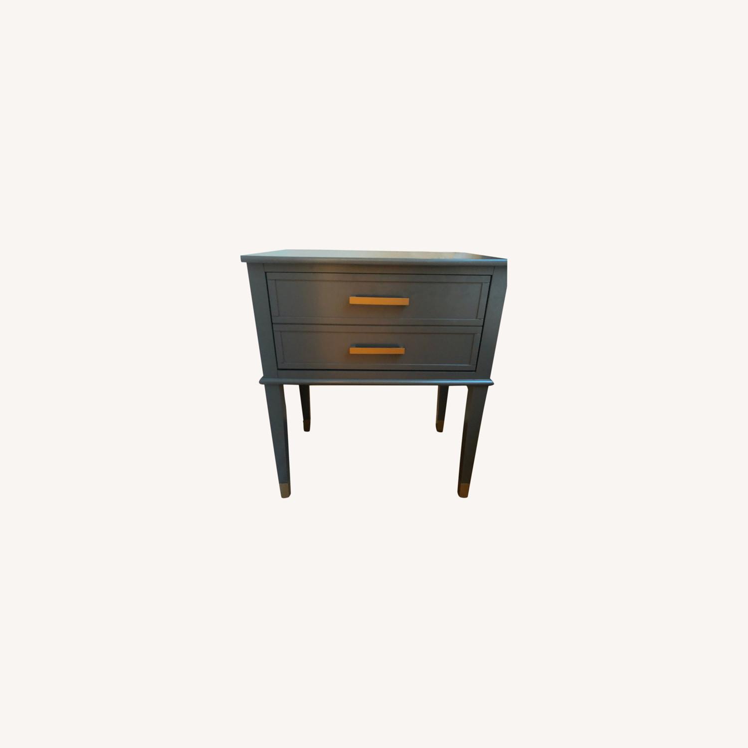 Seller's Notes:I am selling this beautiful night stand after only a few months as I need to move abroad. Excellent condition. The wood color is a blue with some grey undertone. The handles and lower parts of the legs are in a soft gold tone. 1 deep drawer (only looks like two from the outside). D: 15.5 H: 28 W: 23.5 Needs to be picked-up between Jan 26 and Jan 30 (UWS) or delivered .