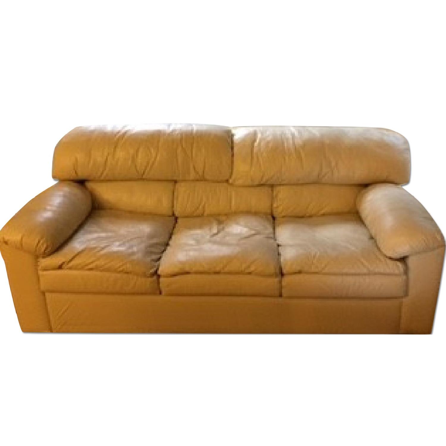 Beige Leather Sleeper Sofa