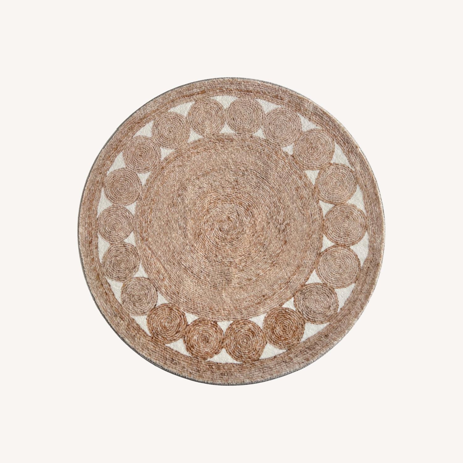 Seller's Notes:Bring warmth and timeless texture into your space with this beautifully structured flatweave rug, crafted using sustainable natural jute fibers. Although power-loomed for consistency and durability, this rug mimics the organic charm of handwoven craftsmanship. Its neutral beige tone and subtle pattern make it a versatile piece for coastal, Scandinavian, and modern bohemian interiors. Material: 100% Natural Jute Technique: Power Loomed Texture: Firm & Textured Flatweave Color: Natural Beige Eco-Friendly & Biodegradable Perfect for living rooms, hallways, entryways, and under furniture Best used with a rug pad to avoid slipping. 5 ft x 5 ft ( 150 cmx 150 cm ) Final Sale , No Return !!! Great Deal.