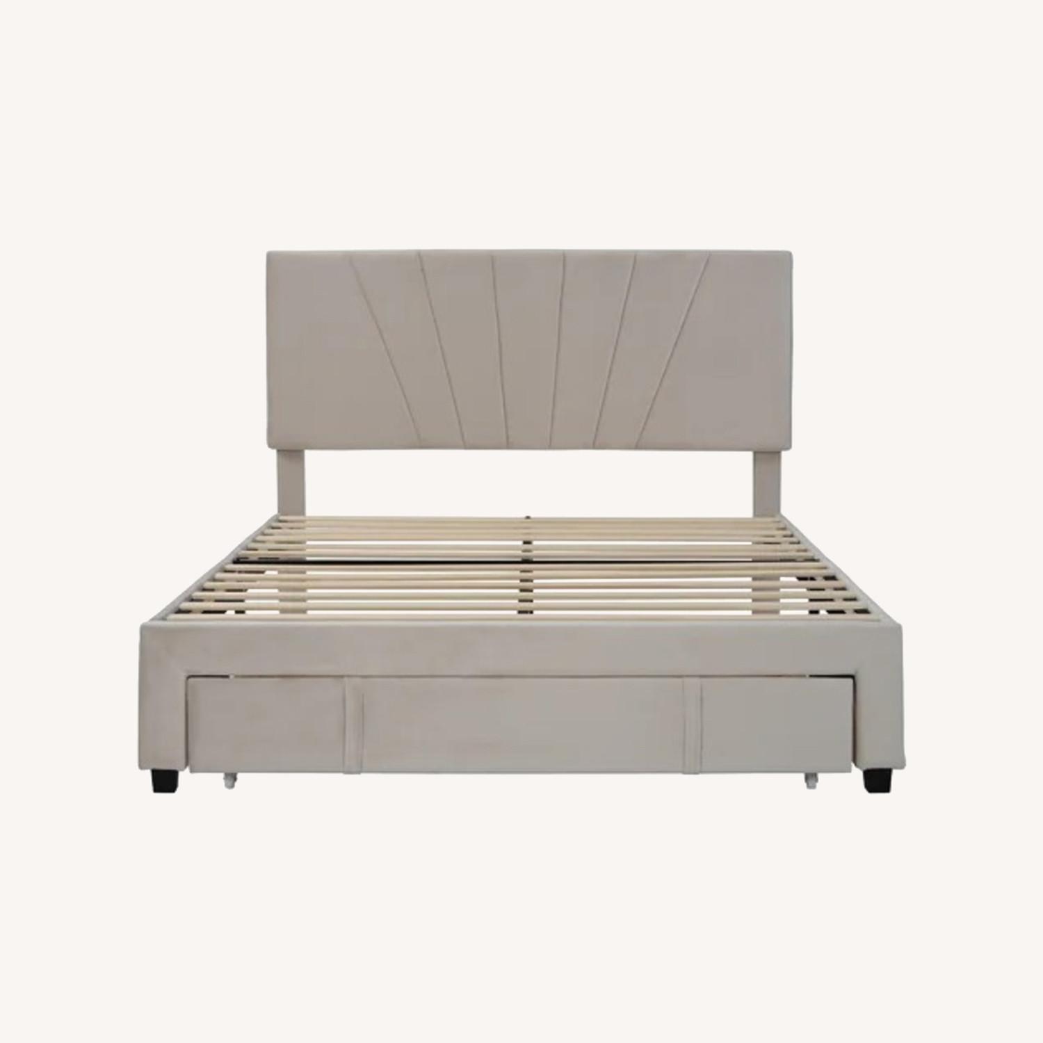 Seller's Notes:BRAND NEW - in original unopened box Beautifully upholstered platform bed featuring an upholstered headboard that adds a contemporary chic look to your bedroom and is filled with thick foam to add extra comfort. Sturdy wood frame construction and a wooden slat system add extra stability and safety.