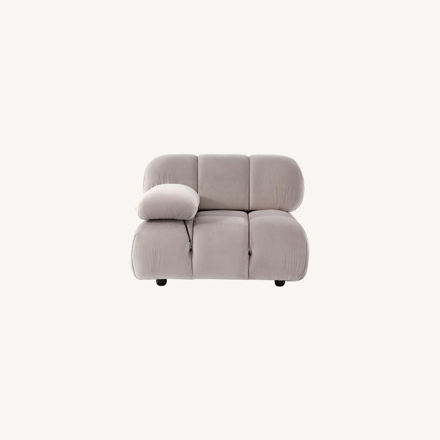 Seller's Notes:The sectional elements of Camaleonda sofa can be used freely and apart from one another. The backs and armrests are provided with rings and carabiners, which allows the user to create a perfect 'seating landscape'. The sofa is very comfortable and the fact this wonderful piece is modular, provides endless flexible solutions for any project or living room. -Frame made from naturally rot resistant Merbau wood; No chemical treatment -Constructed of shaped polyurethane foam with 3 distinct dense layers -Solid wood legs with black stain -Fabric, Aniline/Vintage Leather Leather upholstery -All materials are Flame resistant & non-toxic (Baby Friendly)