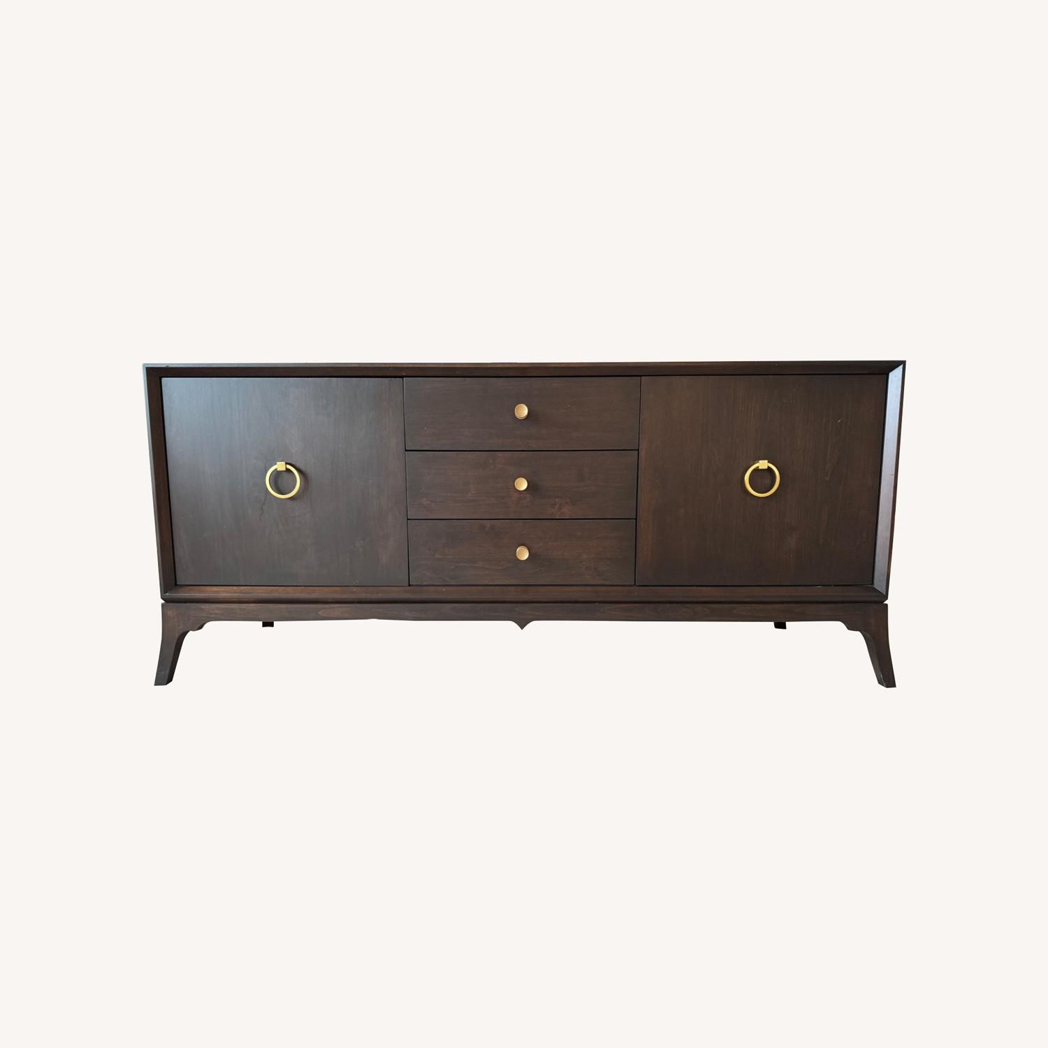 Seller's Notes:Overall Dimensions: 29"H x 66"W x 21"D Outer Section Interiors: 18" H x 21" W X 17" D Drawer Interiors 4" H x 18" W x 16.5" D Made of Solid Wood 2 Adjustable Shelves Included Brushed Brass Hardware Seasoned artisans hand-apply painted and stained finishes in multiple layers with lacquer to create well-worn charm and sophistication. Including dry brushing and hand rubbing of edges, to reveal elegant undertones of stain and texture. Natural imperfections are to be expected in the wood, such as wood grains, dents, knots, and any other characteristics of natural wood formations, adding distinctive texture. Artisans work with the natural wood elements to enhance the rustic feel of these finishes by using an antiquing process of hand distressing with chains, wormholes, and other tools to mimic a natural worn piece of furniture. All painted finishes will patina over time and wood tones will vary. By Redford House