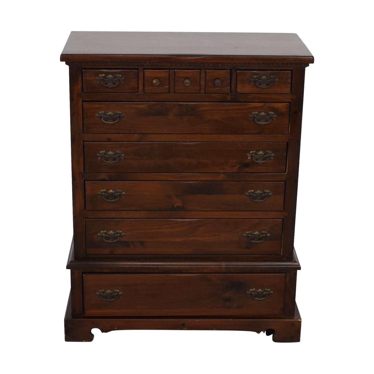 Seller's Notes:BENNINGTON PINE DRESSER Beautiful dark brown Measures 40" W x 51" H x 20" D USED Includes HIDDEN WHEELS for easy moving. Has scratch marks and dings (please see additional photos) Pick up only NYC $500 or Best Offer *I also have a smaller matching dresser and fullsize headboard if interested
