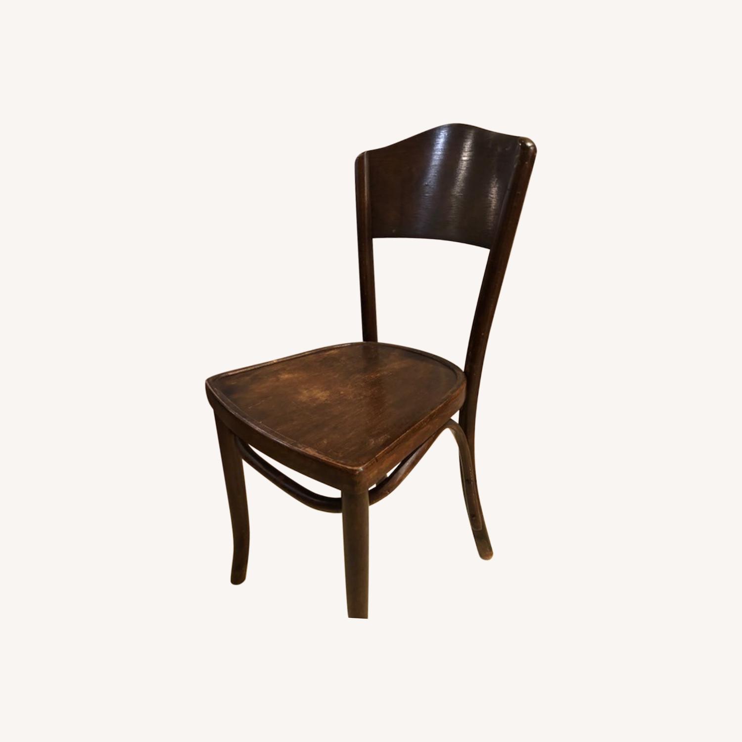 Seller's Notes:Hi there - I have 7 of these chairs - there are 2 styles that are quite similar. There are 3 of the type with the flat chairback, and 4 of the type where the chairback has an upside down V shape. One chair is more damaged with some wood missing. It does not affect the function. These were previously dining chairs in my home. One of the chairs has a "Fischel" label - Czech designer similar to Thonet who was around in the 1940s.