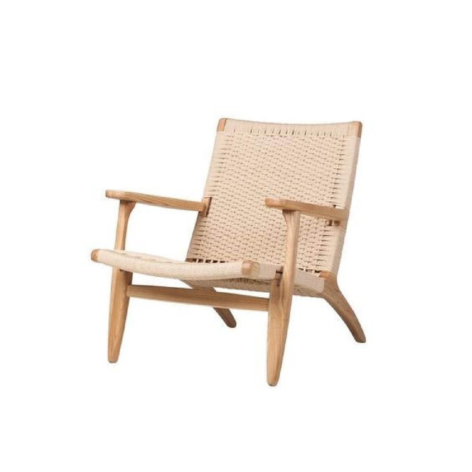 Seller's Notes:I LOVE these woven armchairs, however, they don't fit in my new apartment :( They're woven in a lovely natural, light color with wooden arms and legs. Super comfy to sit in - they used to be in my living rooms as accent chairs for the couch. They look brand new, but there is a tiny nick in one of the arms (see the last photo).
