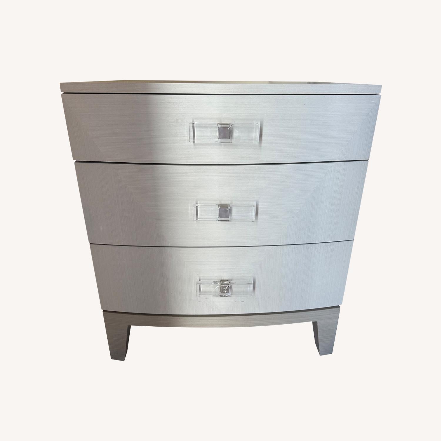 Seller's Notes:Axiom is a glamorous transitional furniture collection with a modern slant. Crafted from poplar solids and engineered faux anigre veneers, the Axiom nightstand uses a sophisticated palette of silky yet low-sheen finishes. The softly curved front and inverted pyramid design elevate the visual appeal of this piece. Clear acrylic is combined with metal for hardware with a fresh and unique feel. With clean lines and a sleek form, this three-drawer nightstand remains a warm and inviting staple for the bedroom.