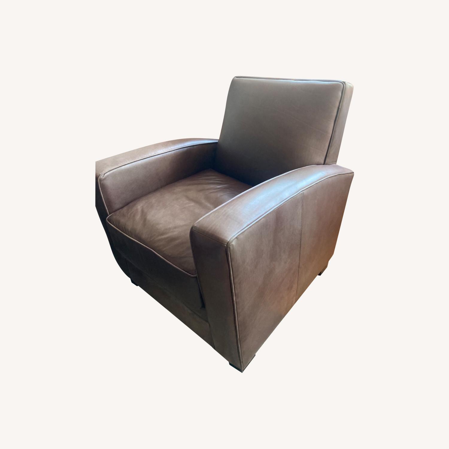 Seller's Notes:Bernhardt brown leather chair kept in good condition. Chair was placed near a bright window causing discoloration and fading/cracks of the leather on the top and arms.