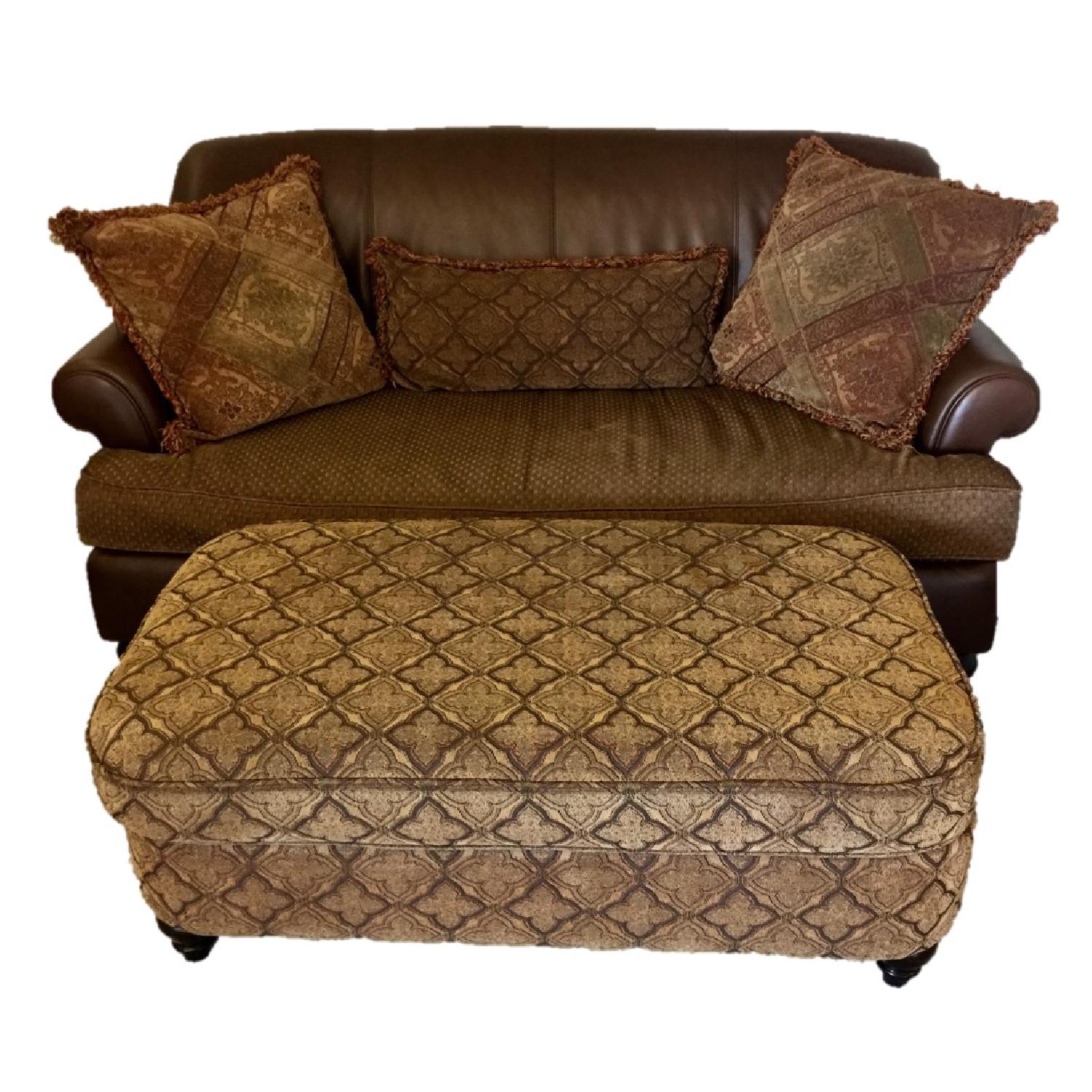Bernhardt Brown Leather/Fabric Loveseat w/ Ottoman & Pillows