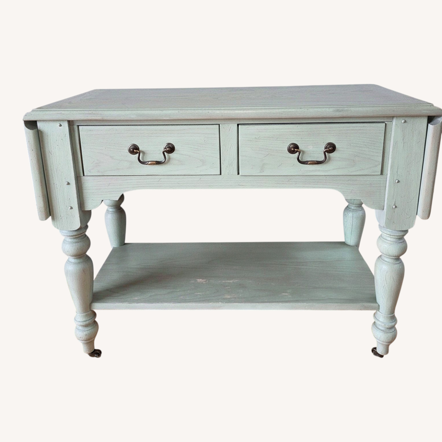 Seller's Notes:Sideboard with two leafs that extend to 65.5 in total. 2 usable drawers. Matches Hutch also posted for sale.
