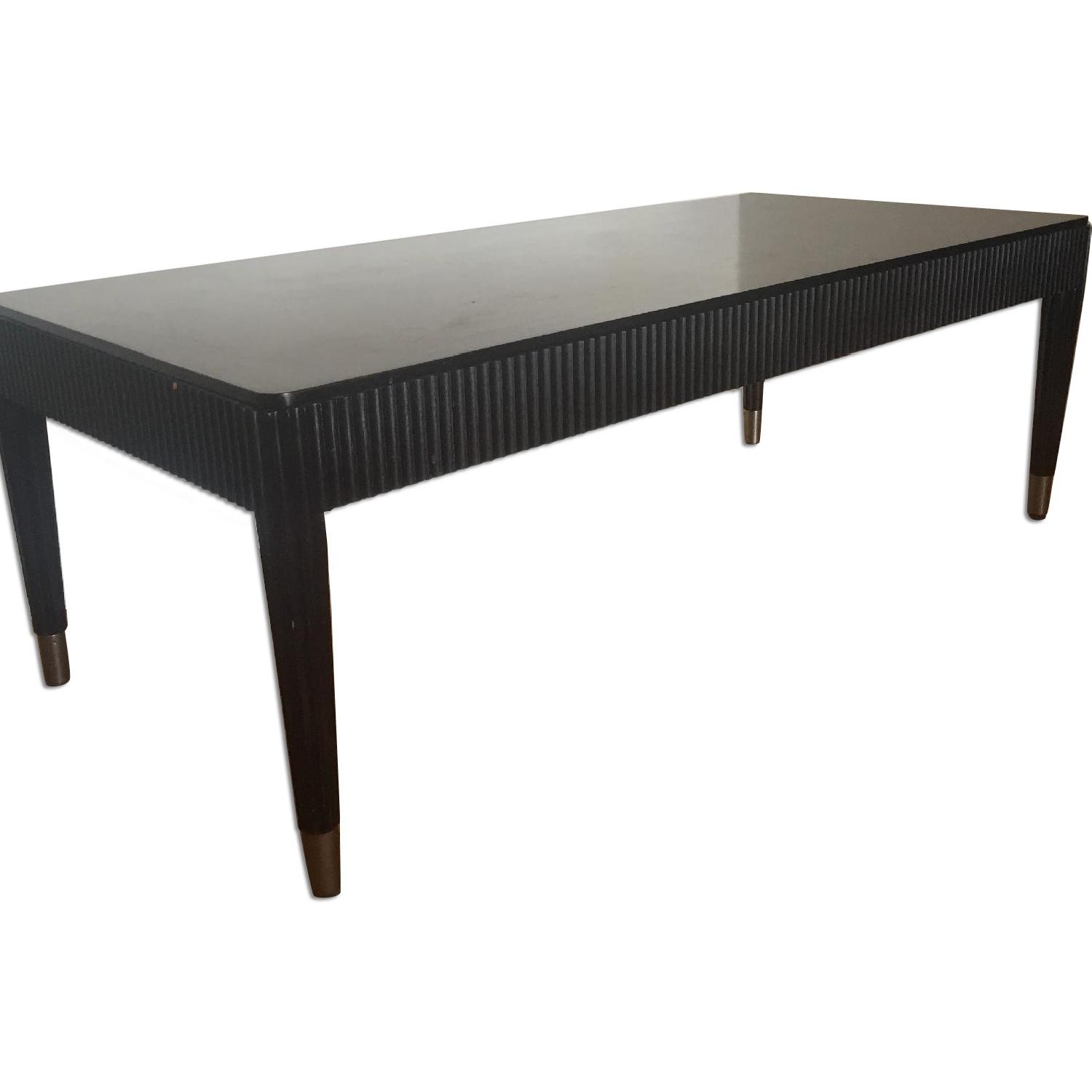 Seller's Notes:Almost New Coffee or Cocktail table Dark Brown Figured Flat Cut Walnut veneers Raven finish Metal ferrules in Vintage Nickel finish Adjustable glides ORIGIONALLY $709 http://www.furniturecrate.com/bernhardt-haven-rect-cocktail-table.html?gdftrk=gdfV21650_a_7c92_a_7c8357_a_7c721490&gclid=Cj0KEQjwj_SvBRC7k4DfkLHiuMABEiQAvPOaqSJ5fv7IRNRluoFNsnqaZ90EOmn0e9U7MSptDKZzdWsaAnr08P8HAQ