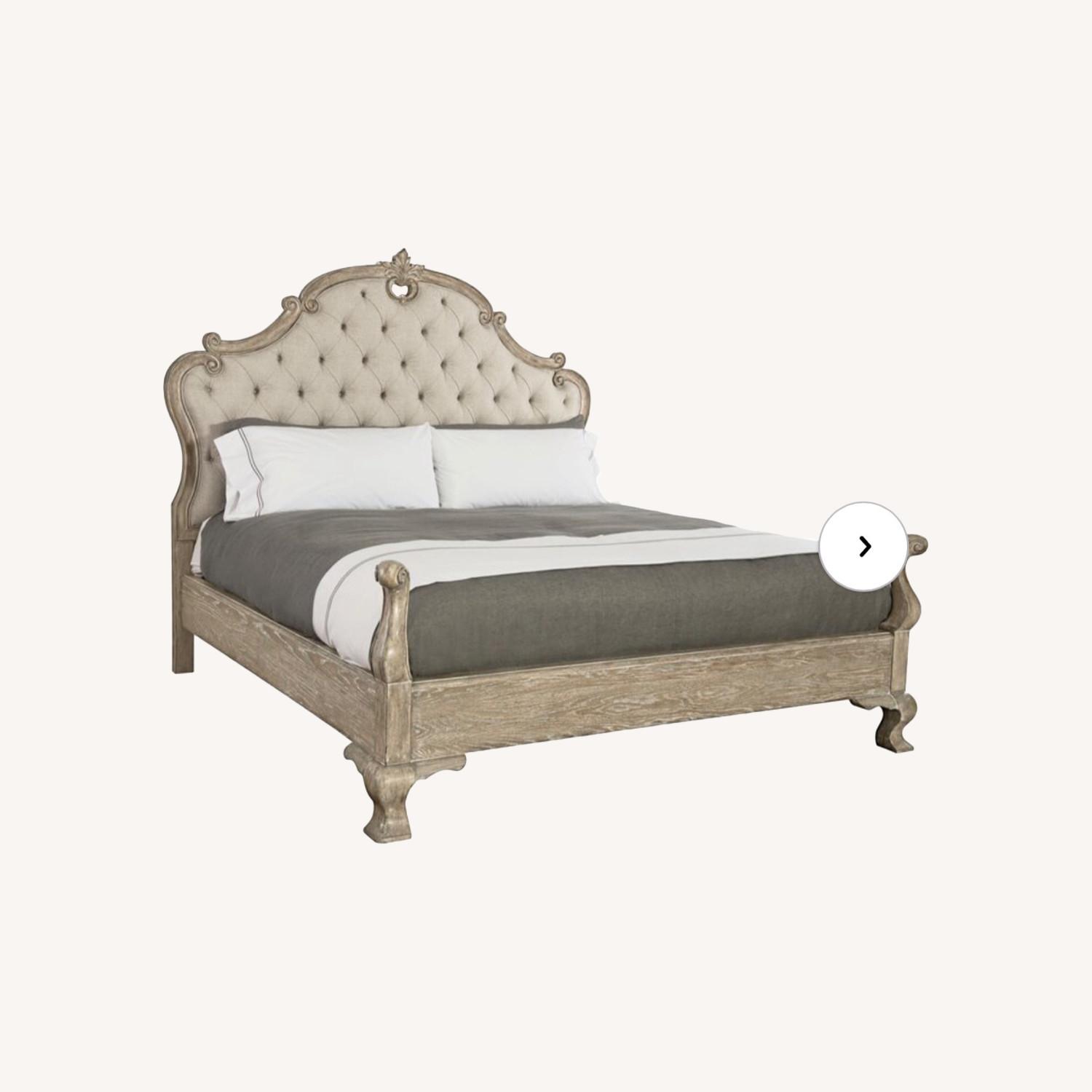 Seller's Notes:Selling this 1 year old Bernhardt King sized bed. Mattress not included. Solid wood bed with fabric headboard. Absolutely beautiful and high quality. Sadly, I have to downsize.