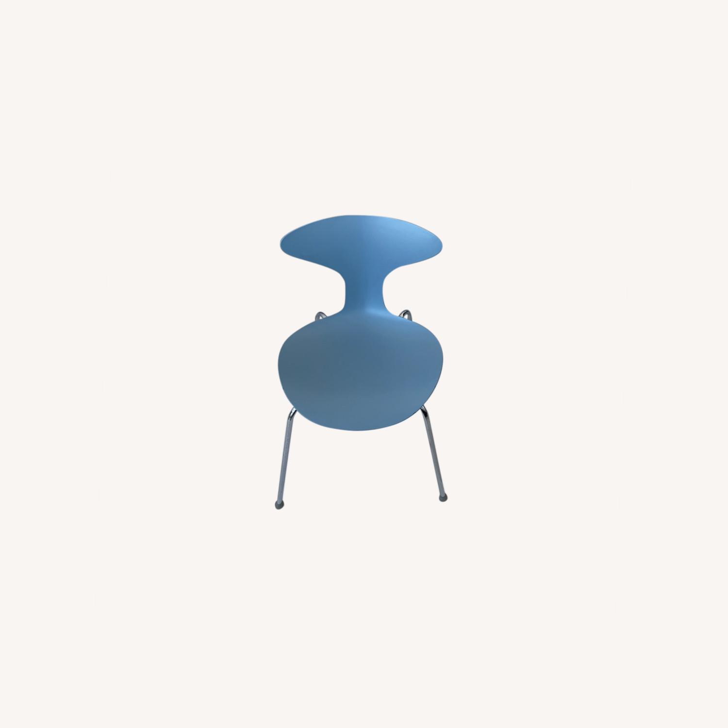 Seller's Notes:These are fabulous with clean lines. Aside from a few nicks here and there, mostly on the edges of the chair (see photos, and I'm happy to take more specific photos upon request) these are in excellent condition. These cost about $600 each if you buy them new and the baby blue color is hard to come by. Very solid construction, surprisingly heavy but still easy to move. Plus they stack! Design by Ross Lovegrove
