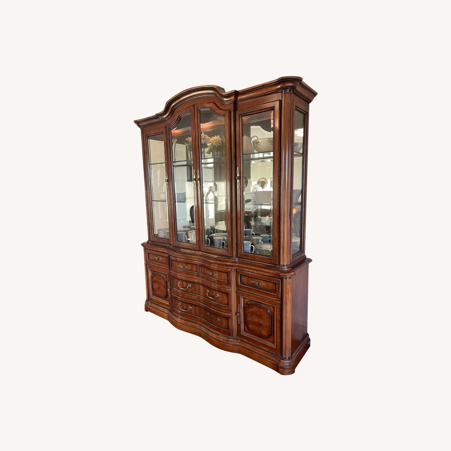 Seller's Notes:This beautiful wood hutch is a treasure in this home for over 40 years. It resides in a formal dining room in a historic home in Greenville Illinois. Used to entertain and display China with mirrors, lights and glass on the top. Drawers have silverware felt organization and even an additional spare handle. Perfect condition due to never being relocated. We are remodeling the kitchen and plan to take room from the dining room and no longer have space. Looking for a new home to love this furniture. A buffet cabinet is also available to match.