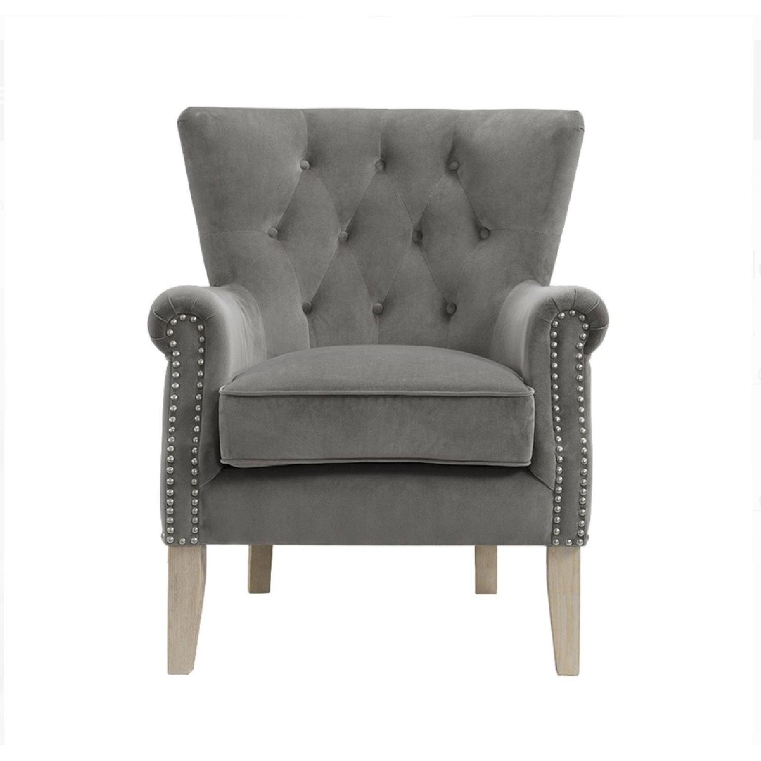 Seller's Notes:- Grey tufted accent chair with beautiful nailhead trim - In excellent condition only 6 months old - Comes from smoke free and pet free home - Very comfortable