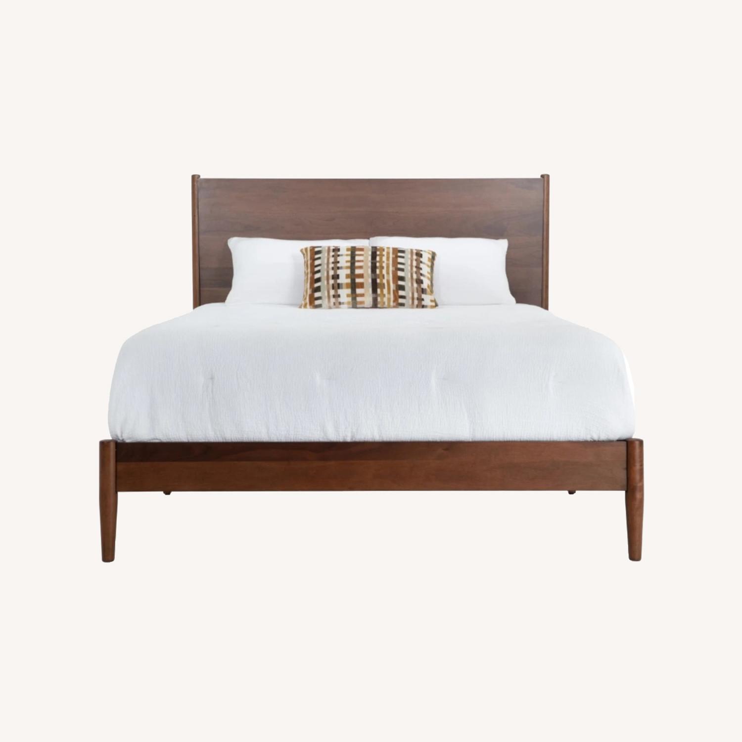 Give your bedroom a mini mid-century modern makeover! My Bettie bed has sleek walnut veneer legs and warm wood tones—just add some funky wall art to complete the look!