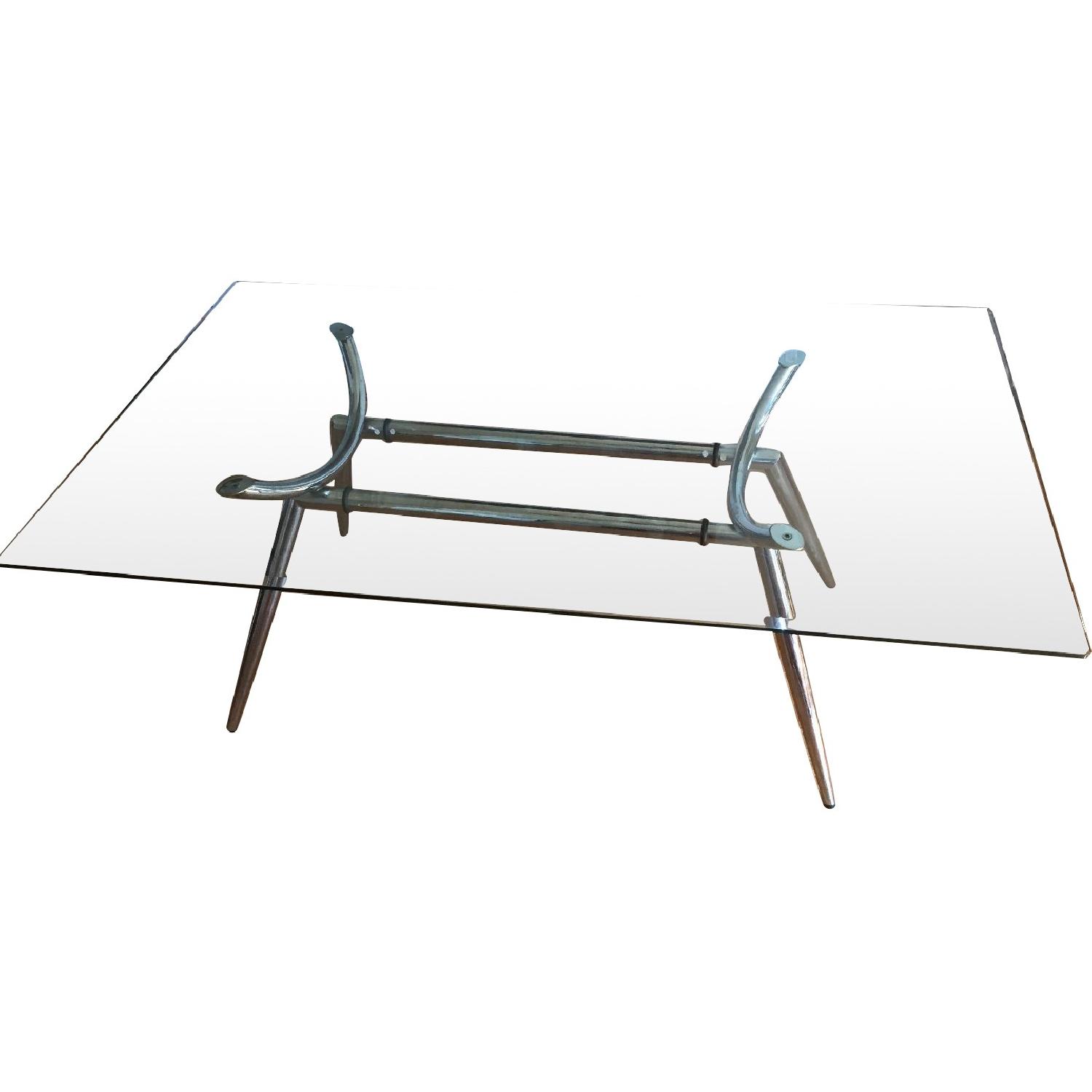 Seller's Notes:Beveled glass table with chrome legs. We had used as a dining table but could also be used as a desk! Great condition