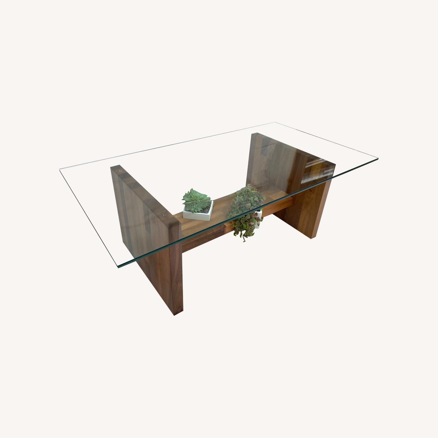 Seller's Notes:Concept piece from LA-based designer Ian Sides seamlessly blends biophilic design elements with clean modern lines, while maintaining an invitingly warm mid-century palette -- a perfect statement piece for your midcentury modern, California modern, or coastal modern living room. The "floating" ceramic pots are inspired by rocks nestled in gnarled tree roots, while the thick glass evokes the serenity of a calm alpine lake. Handmade in Los Angeles.