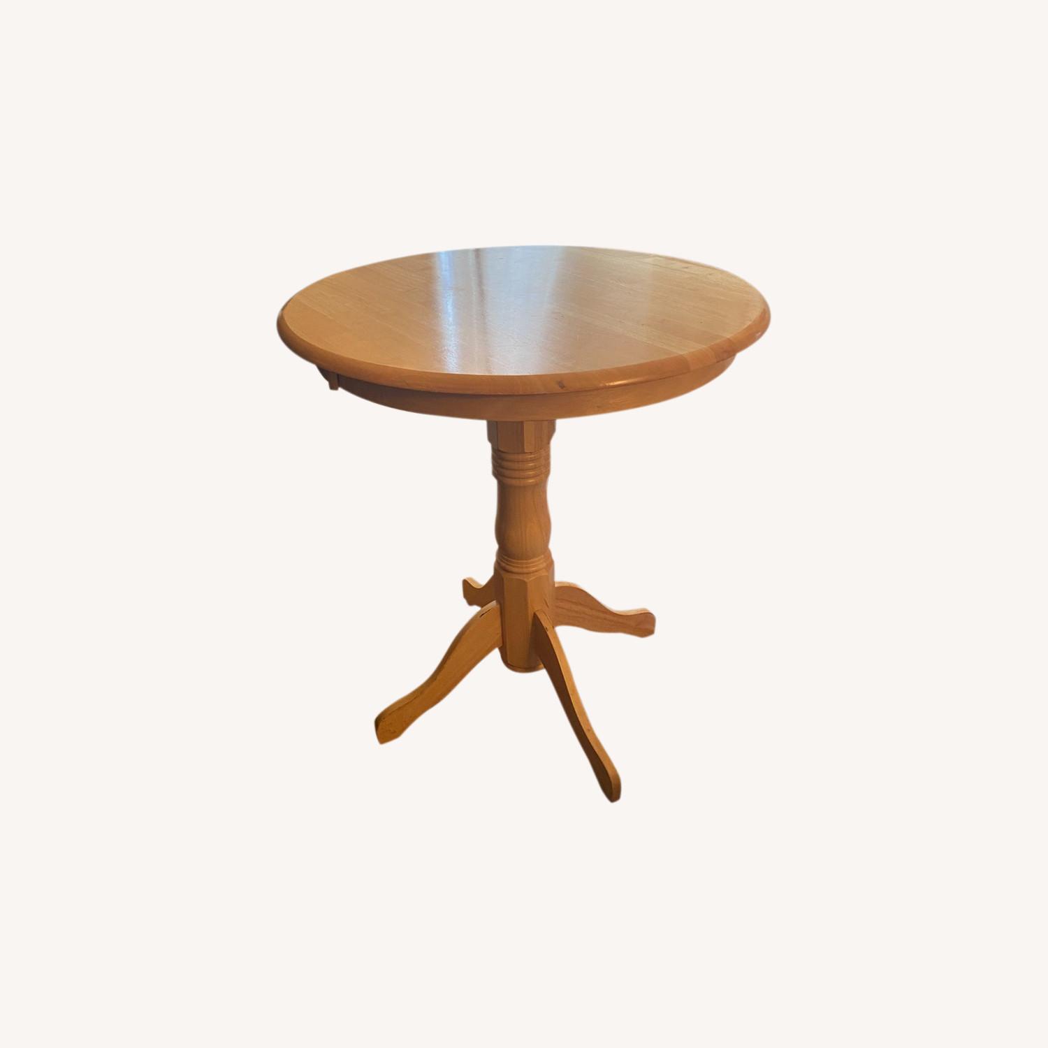 Seller's Notes:Tall, bar height kitchen table with two beautiful wicker chairs. Great for small kitchens, standing and eating, prepping food. Great condition.