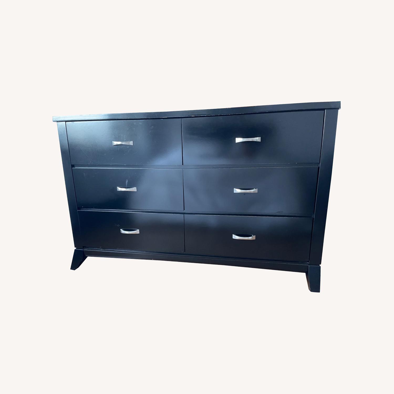 Seller's Notes:Gorgeous hard wood dresser, 6 drawers, chrome fittings, black gloss finish. Holds a ton of clothes or any other belongings. Using it as a second closet. Measurement 38” height 60” width 17” depth. Minor scratches on top, but gets covered easily if u put anything on it