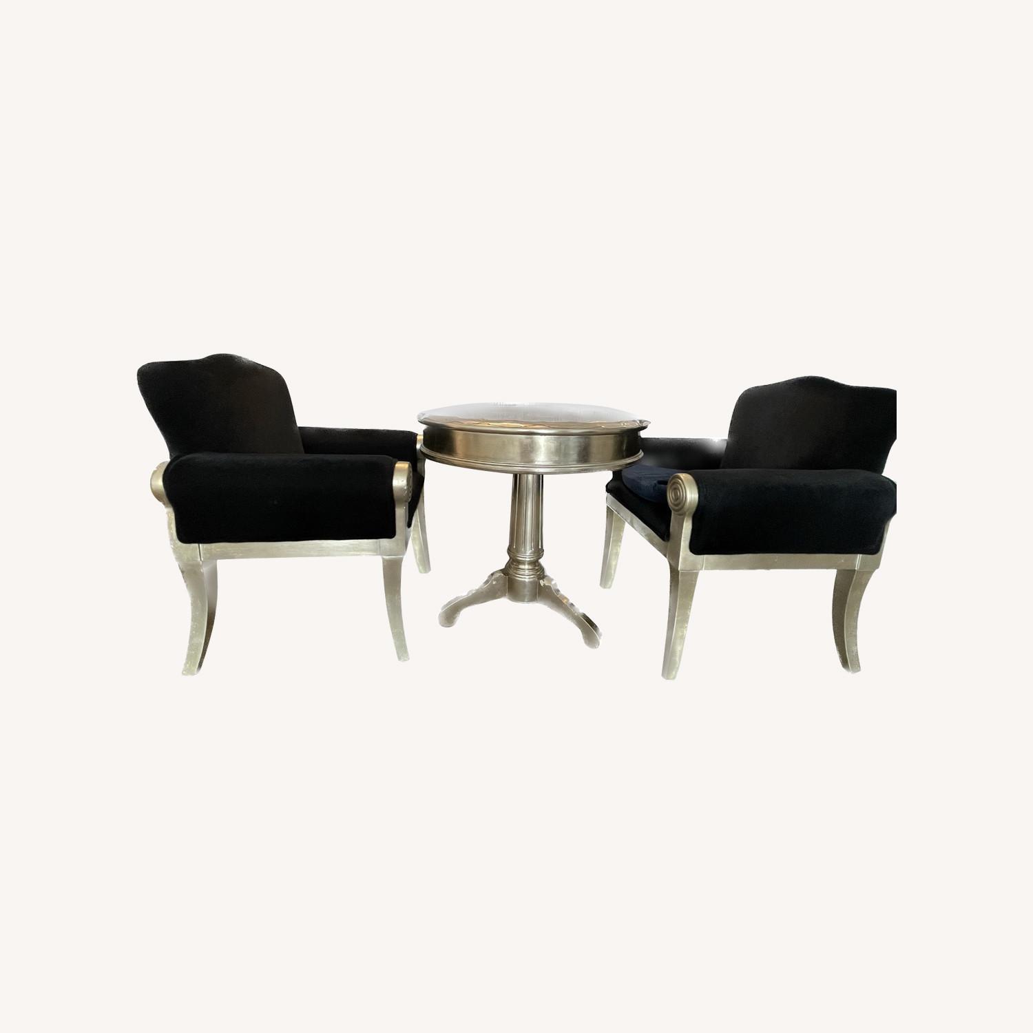 Seller's Notes:Well-made black and gold accent table set. Never really used it until last year. There’s some blemishes on the foot of the table but not really noticeable.