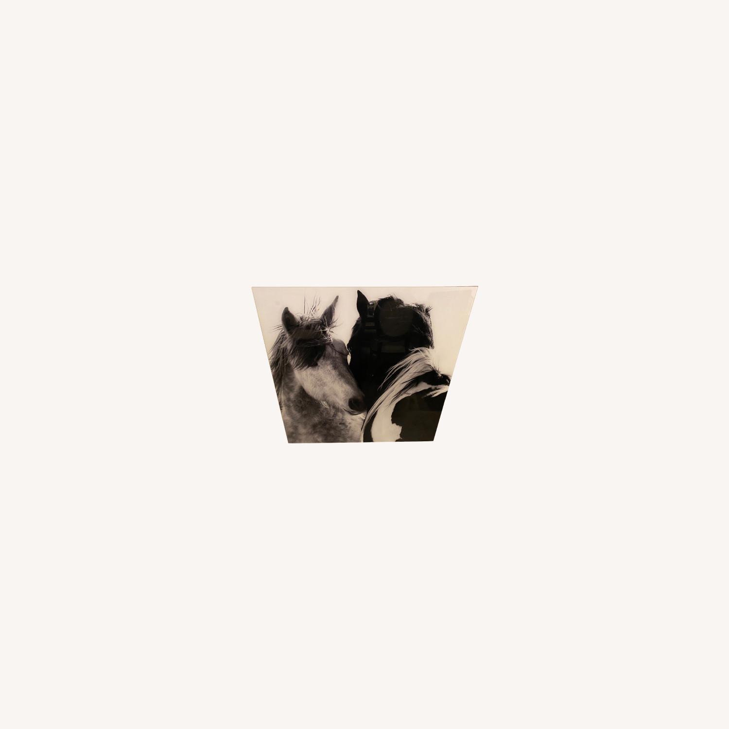 Seller's Notes:Beautiful wall art of two horses, no damage, no scratches, professional museum style glass covering.