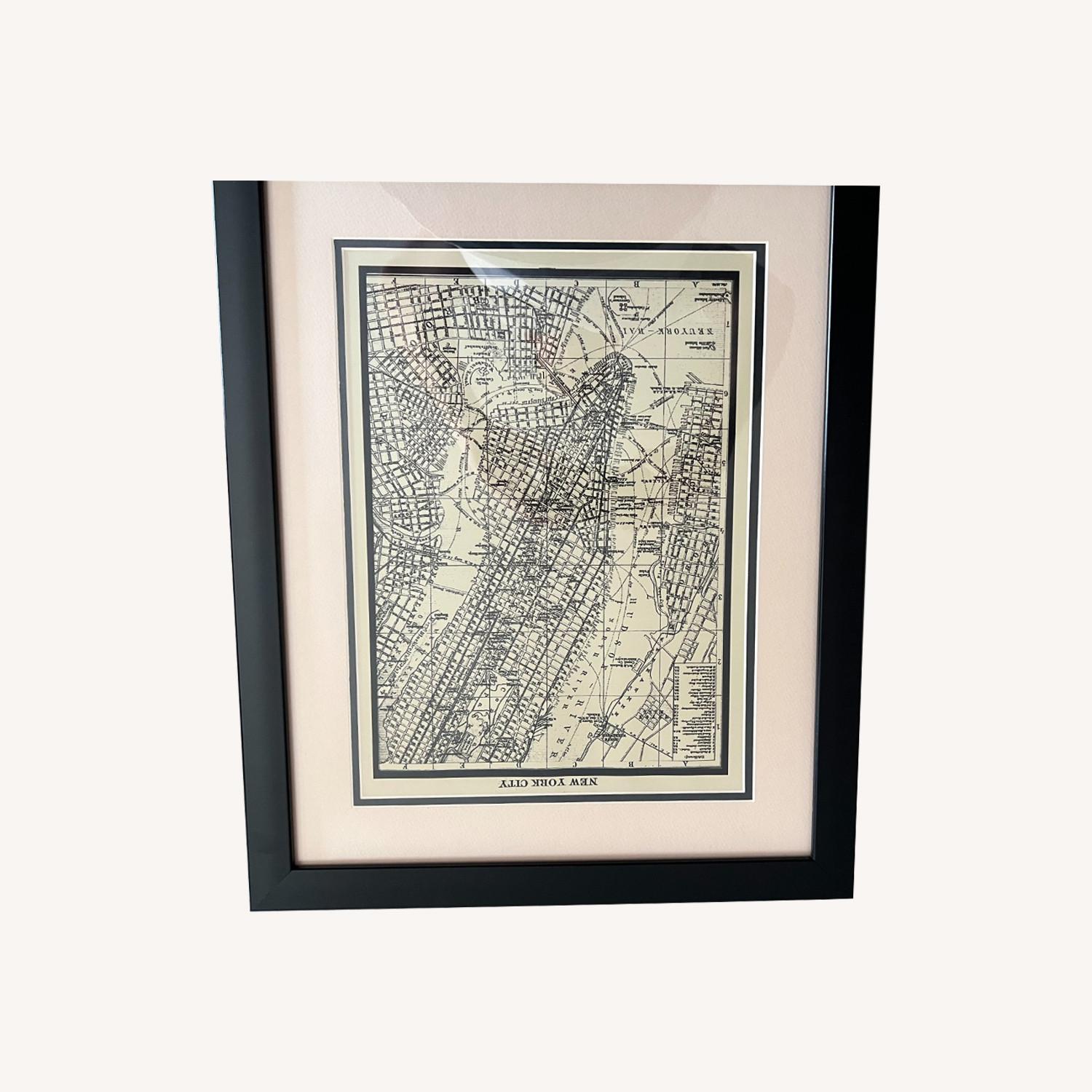 Seller's Notes:Black and white map of New York City with black wooden frame