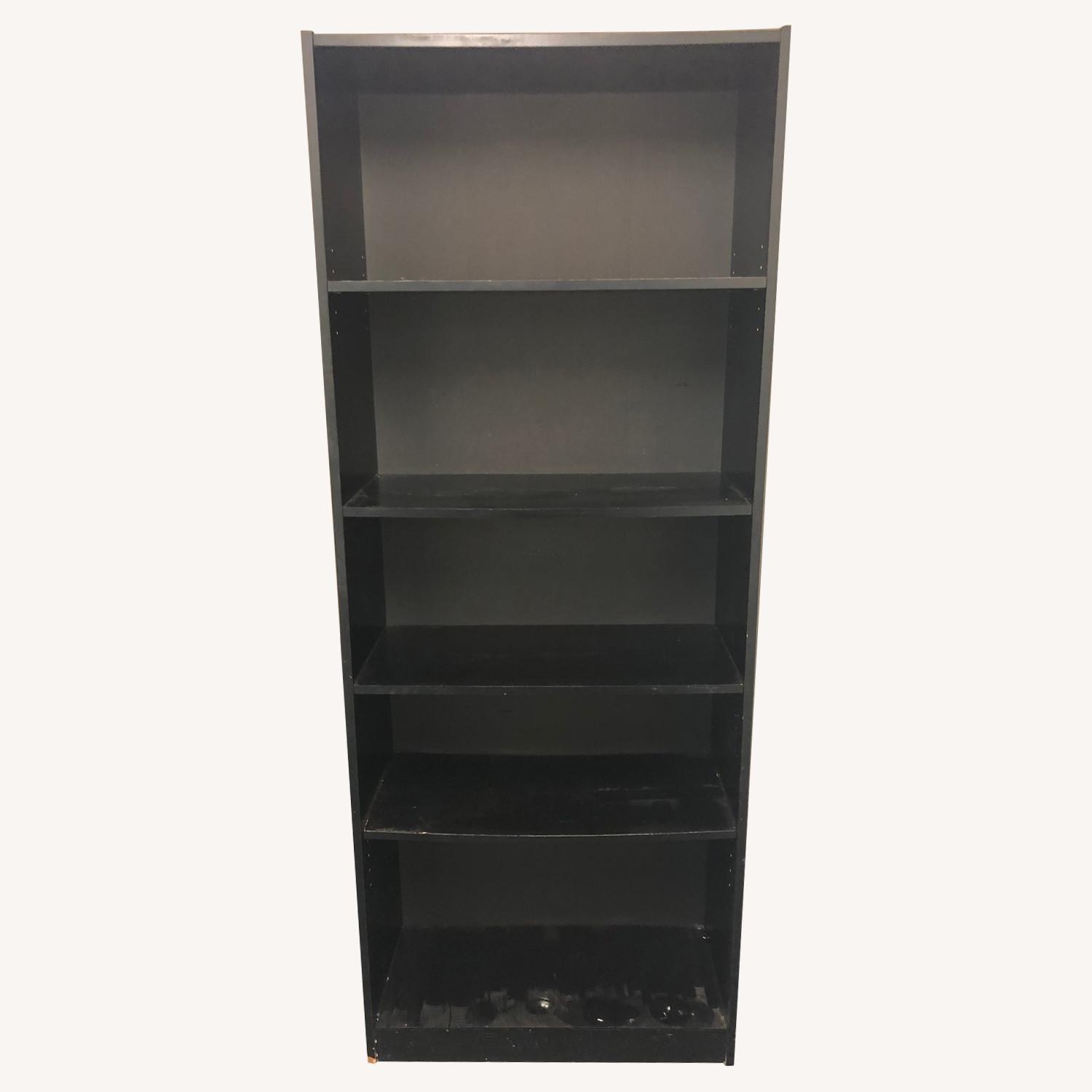 Seller's Notes:Black book shelf. Two available. They are slightly different in size 1) 28" wide x 12" deep x 72" tall 2) 28" wide x 9.25 deep x 70 tall