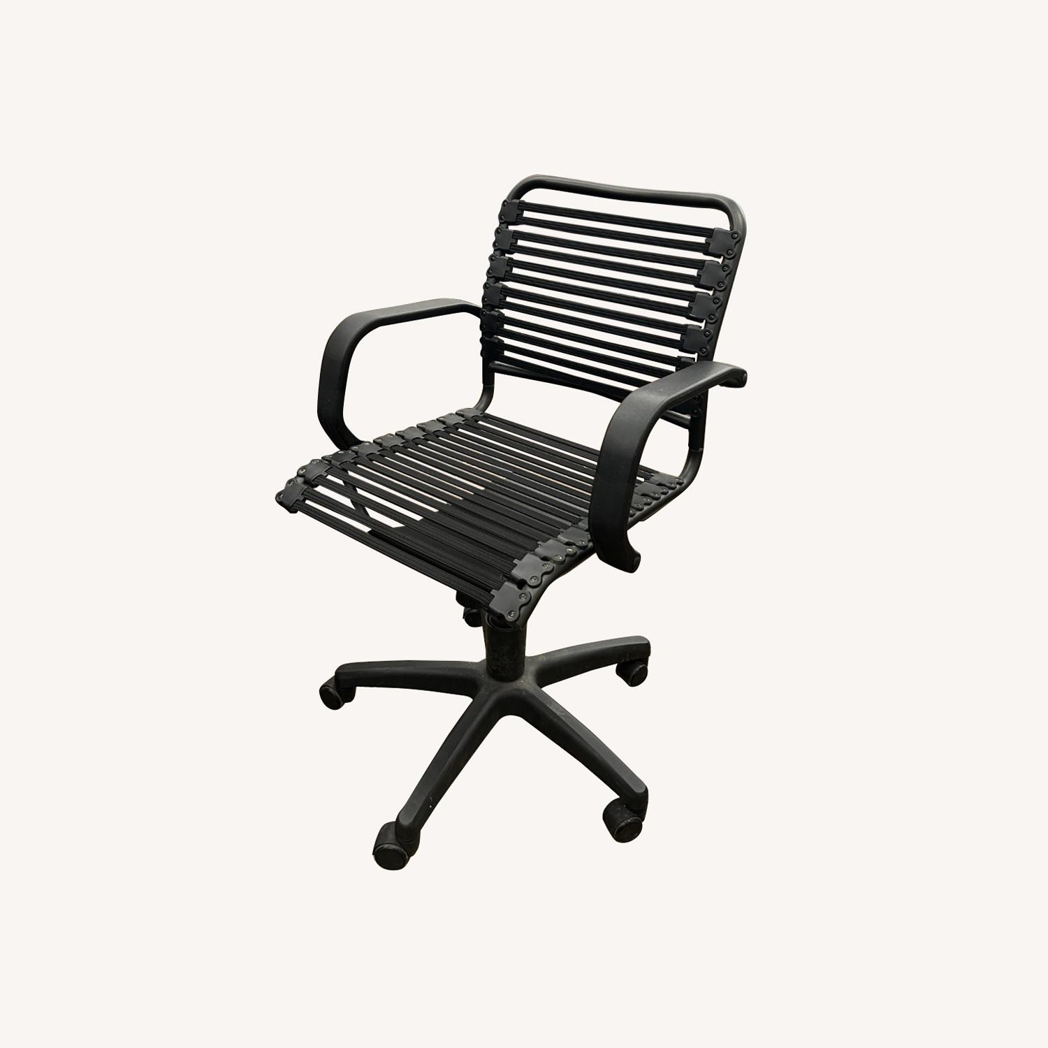 Seller's Notes:We have nine bungee cord office chairs. Open to negotiating a price for multiple chairs. - Pneumatic lift easily adjusts the height of the seat from 17.5" to 21.5"; seat measures 18" wide x 17-3/4" deep. - Fixed arm rests and powder-coated steel frame; polyurethane casters are friendly to wood flooring. - Supports up to 450 pounds. - Suitable for various tasks, from office work and gaming to crafting and studying. - Easy maintenance, with occasional vacuuming or spot cleaning to keep it looking its best.
