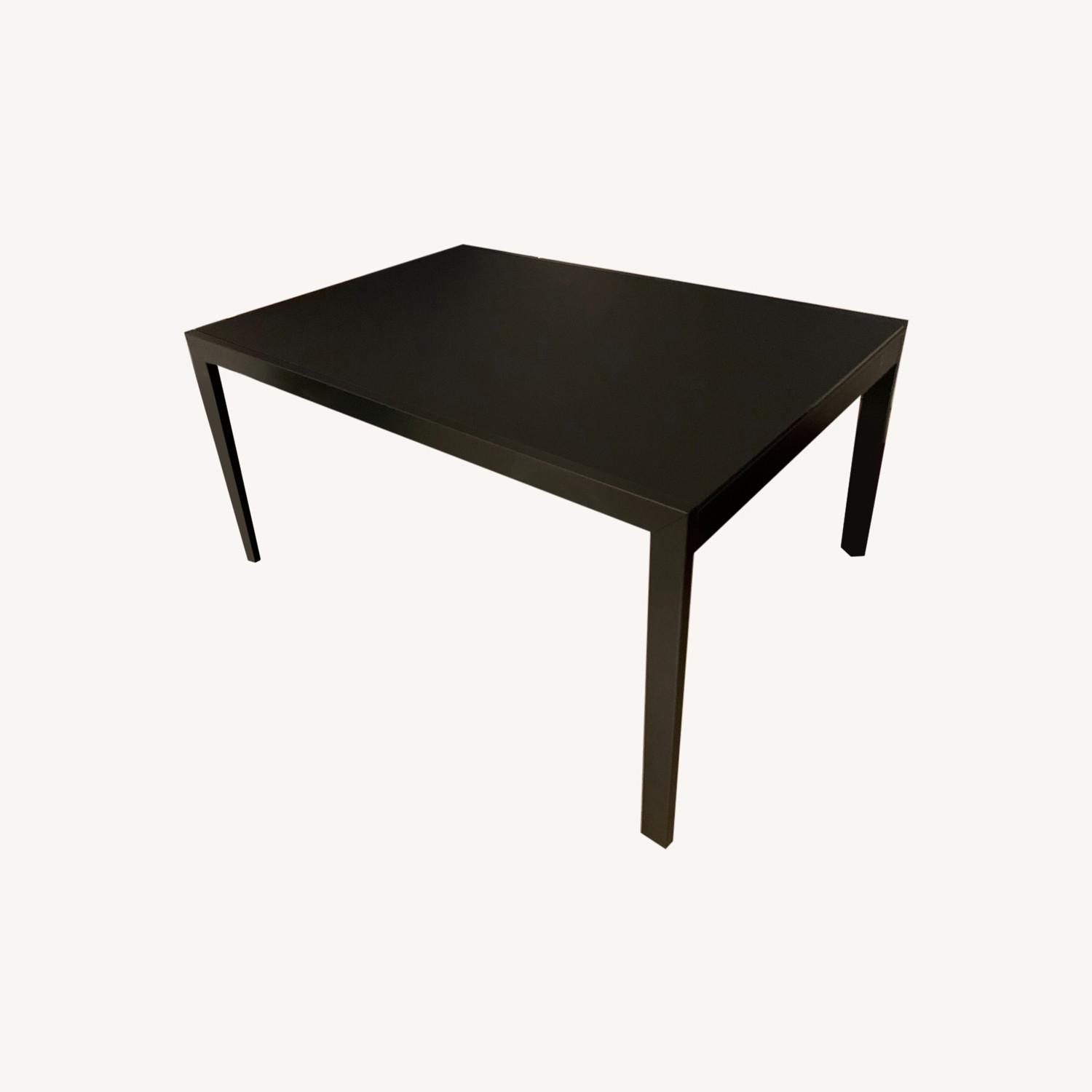 Seller's Notes:This is a beautiful premium Calligaris table. The top is acid etched black glass and the legs/frame are a matte black metal. The best part is that it easily expands from 51 to 90 inches, from 6 to 10 people. It's in great condition and can be used for both work and dining table.